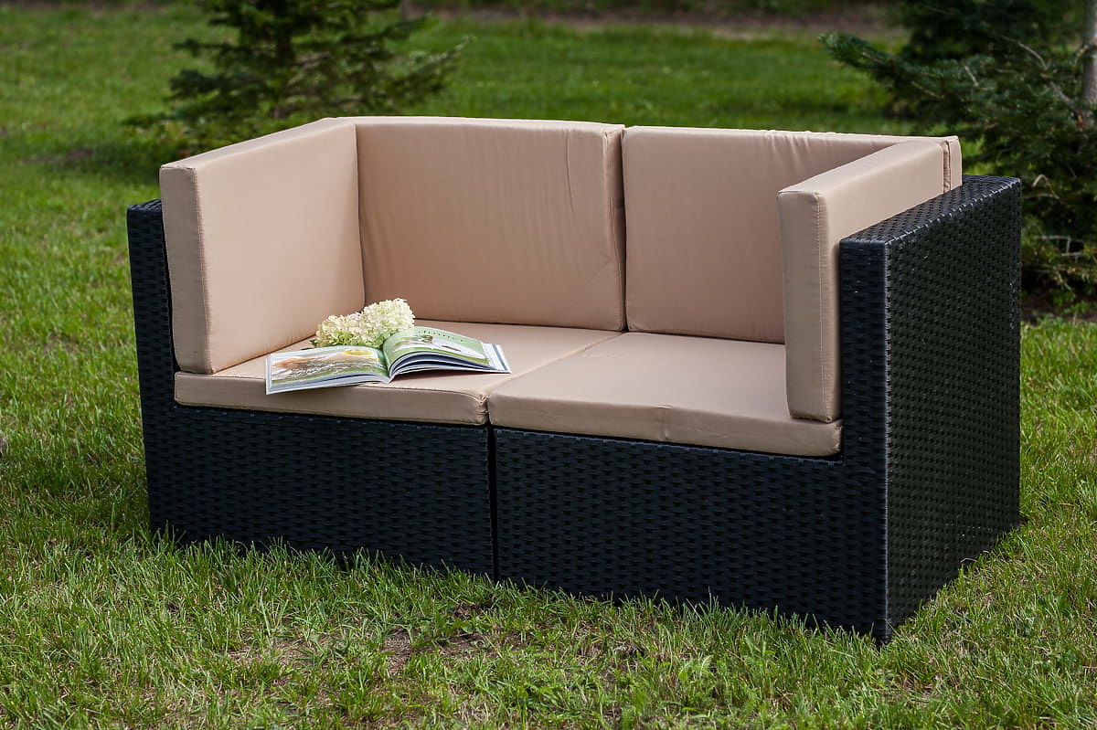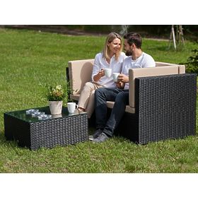 Divano a due posti con tavolino in tecnorattan TINTO nero