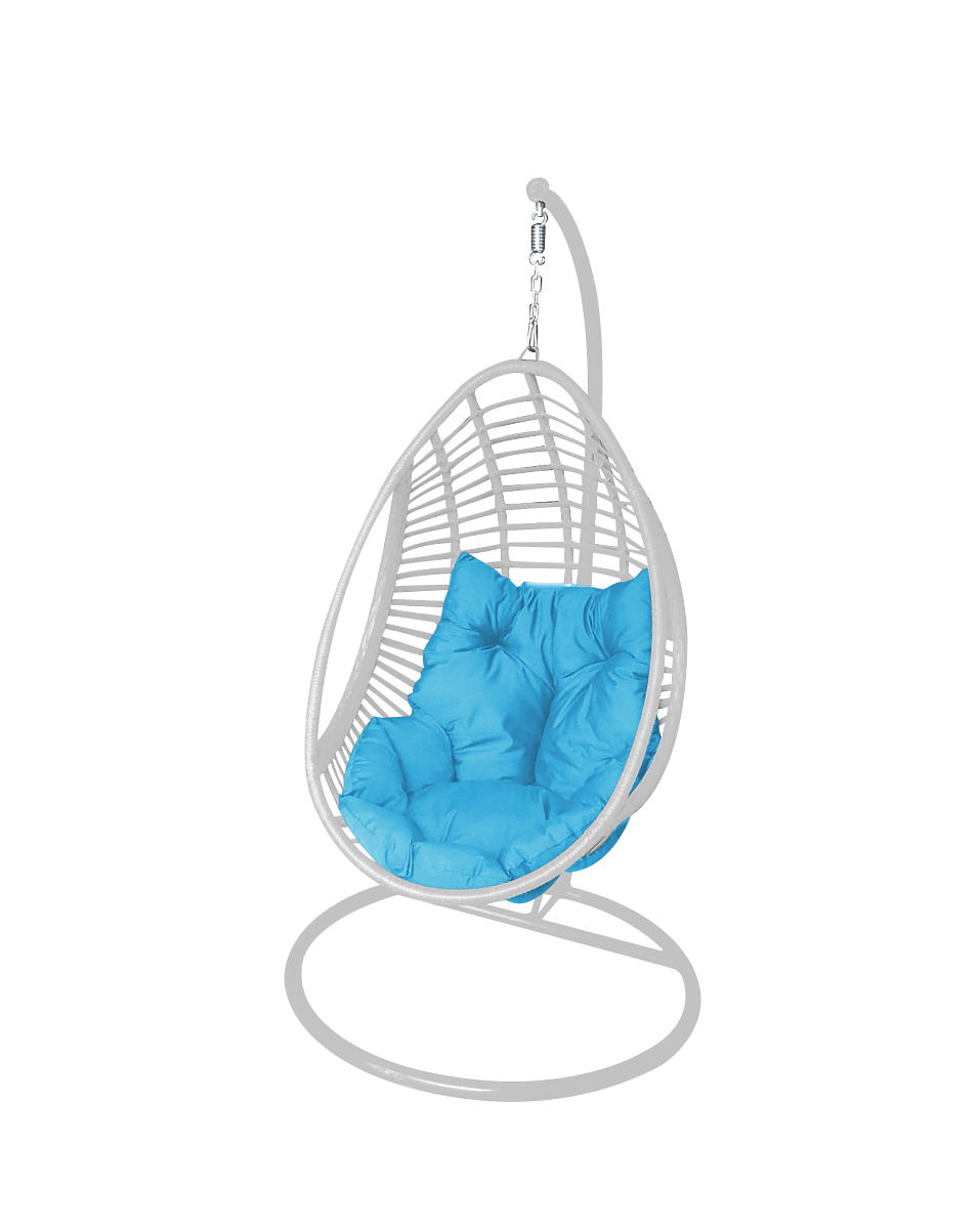 Sedia sospesa BELLISSIMO (sedia + telaio) in technorattan bianco con cuscino blu, rivestimento GRA