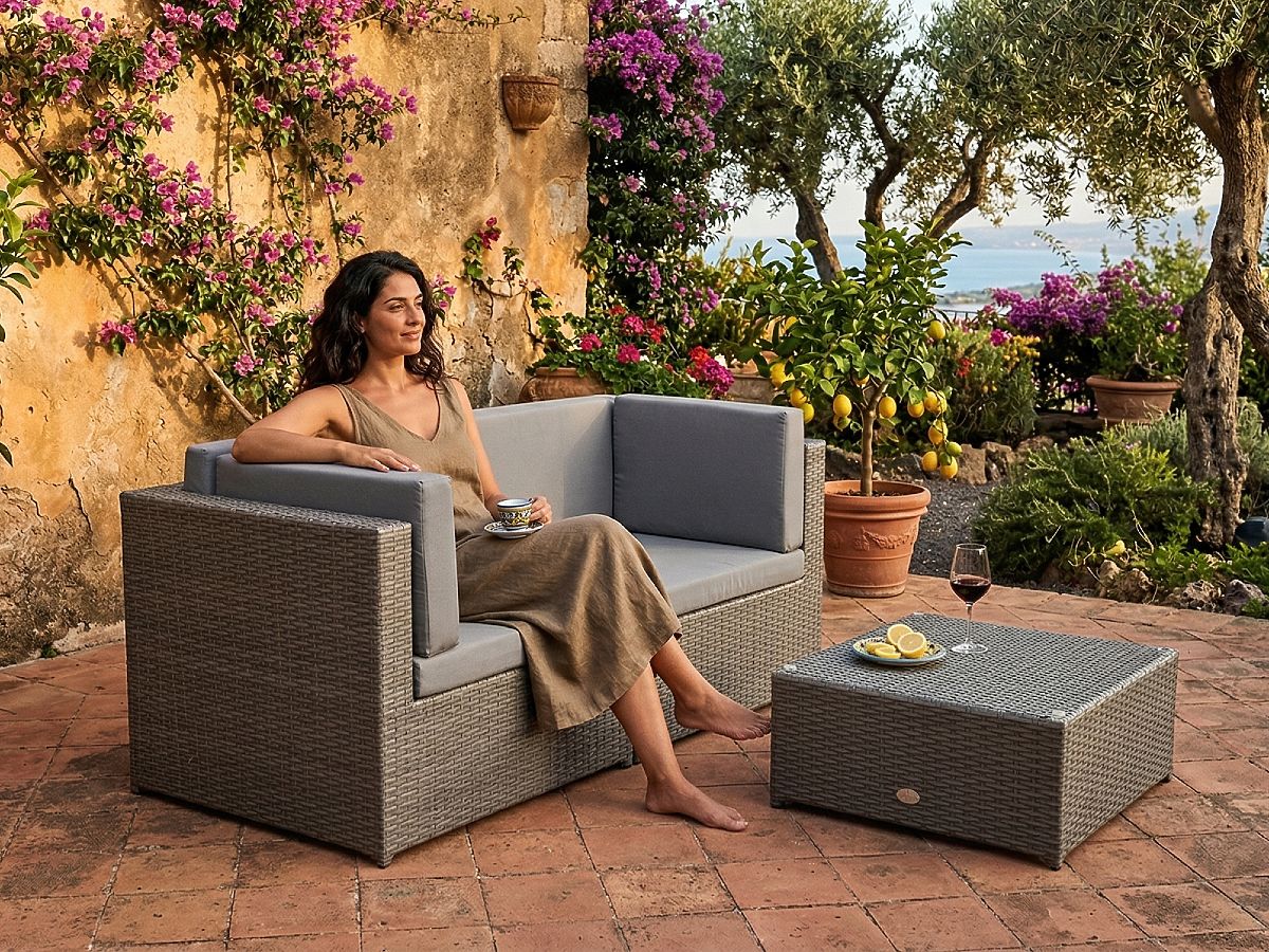 Se stai cercando mobili che portino stile ed eleganza al tuo balcone o terrazza senza occupare troppo spazio, i mobili da giardino TINTO sono la scelta ideale. I mobili da balcone TINTO sono stati creati per garantire la massima resistenza alle condizioni atmosferiche, come umidità, vento, gelo e gli effetti dannosi dei raggi UV, mantenendo così il loro aspetto inalterato per molti anni. Grazie all'uso di rattan di alta qualità, questi mobili da terrazza non sono solo resistenti, ma anche facili da mantenere, rendendoli una soluzione eccellente per chi apprezza il comfort e il minimalismo nell'organizzazione degli spazi esterni. Il design elegante e l'alta funzionalità rendono il nostro set un complemento unico che ti permetterà di godere della bellezza e del comfort all'aperto per molte stagioni. IL DIVANO NON HA CUSCINI LATERALI "BRACCIOLI" Colore del set: grigio Intreccio: tecnorattan 7-8mm x 1,2mm, struttura spazzolata Struttura dei mobili: acciaio Il set è composto da 3 elementi: 1 x divano (2 moduli angolari 68/68/63): larghezza: 136 cm profondità: 68 cm altezza: 63 cm 1 x tavolino: lunghezza: 60 cm larghezza: 60 cm altezza: 28 cm Il set viene spedito in 1 cartone di dimensioni 77x77x65 cm, peso 28 kg. I cuscini in colore grigio sono inclusi nel set (2 pezzi per le sedute e 4 pezzi per gli schienali). Tutti hanno fodere rimovibili con zip (100% poliestere), lavabili a basse temperature. Spessore dei cuscini: sedute 6 cm, schienali 8 cm. Il tecnorattan è resistente agli effetti dannosi degli agenti atmosferici, tuttavia, per mantenere più a lungo l'aspetto inalterato dei mobili, consigliamo l'uso e lo stoccaggio del prodotto sotto una tettoia o l'acquisto di una copertura protettiva. La copertura in colore grigio scuro è monoblocco e ha un cordoncino regolabile in basso passato attraverso occhielli metallici. Tutte le coperture sono realizzate su misura e il tempo di realizzazione è di circa 21 giorni lavorativi. Immagina mobili da giardino che superano le tue aspettative in ogni aspetto - dalla resistenza al design. Questo è BELLO GIARDINO, dove ogni dettaglio ha significato e il lusso incontra la funzionalità: Qualità inalterata: Il nostro rattan sintetico garantisce che i mobili durino anni, senza perdere bellezza o resistenza. Resistenza alle intemperie: I nostri mobili affrontano le condizioni atmosferiche più difficili, dal sole cocente agli inverni gelidi, rimanendo sempre belli. Comfort lussuoso: Cuscini spessi e morbidi invitano al relax, offrendo un comfort difficile da trovare altrove. Leggerezza e resistenza: La struttura in alluminio combina il meglio di entrambi i mondi - è leggera, ma estremamente stabile. Design che incanta: Ogni elemento dei nostri mobili è stato progettato con attenzione all'estetica e alla funzionalità, per adattarsi a qualsiasi ambiente. Che tu sia un amante del minimalismo o apprezzi arrangiamenti ricchi ed eleganti, i nostri mobili soddisferanno le tue aspettative, superando i confini della funzionalità e dell'estetica comuni. Garantiamo che anche i clienti più esigenti non resisteranno al comfort e allo stile offerti da BELLO GIARDINO. Trasforma il tuo giardino, terrazza o balcone in un'oasi di relax ed eleganza che hai sempre desiderato. Non aspettare, scopri BELLO GIARDINO oggi stesso e trasforma i tuoi spazi esterni nei luoghi che hai sempre sognato.