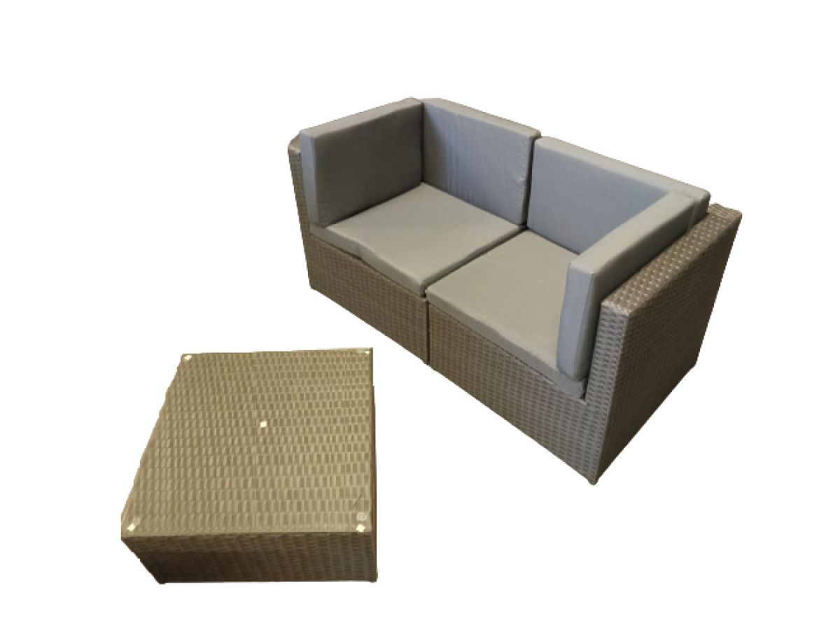 Piccolo set da terrazza in tecnorattan (divano+tavolino) TINTO grigio