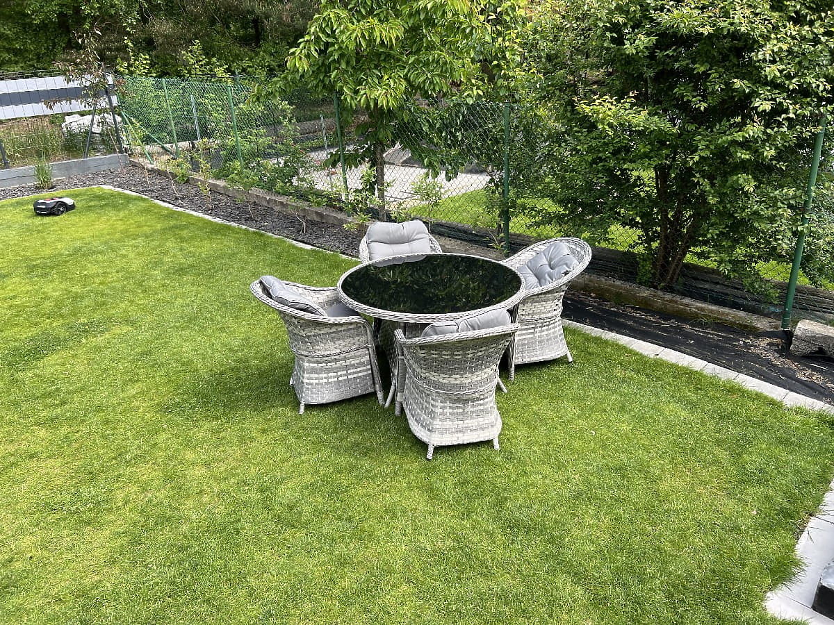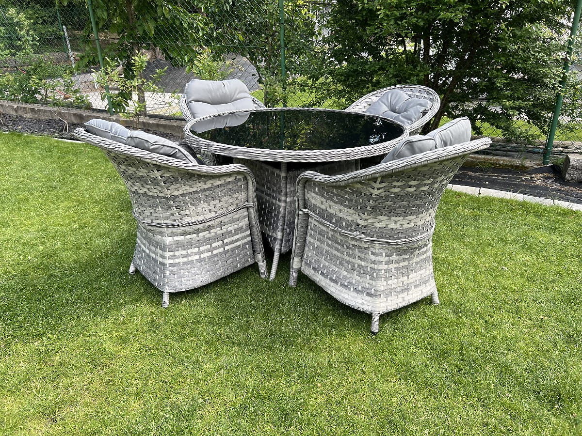 Il set di mobili da tavolo MODERNO è sinonimo di modernità ed eleganza nell'organizzazione degli spazi. Si distingue per un design insolito che si adatta alle tendenze più moderne del design, offrendo al contempo eccezionale durata e resistenza grazie all'uso del rattan sintetico di altissima qualità. Le poltrone e il tavolo di questa collezione sono assolutamente resistenti agli agenti atmosferici, rendendo il set MODERNO una scelta eccellente sia per uso interno che esterno. Questo eccezionale set di mobili è stato progettato pensando ai clienti più esigenti, che cercano una combinazione di funzionalità, durata e design moderno. Colore del set: mélange grigio chiaro, non uniforme Colore dei cuscini: grigio scuro Intreccio: tecnorattan piatto 17mm x 1,2mm e tecnorattan rotondo, struttura liscia Struttura: acciaio Il set è composto da 5 elementi: 4 x poltrona: larghezza: 56 cm profondità: 70 cm altezza: 81 cm 1 x tavolo (con piano in vetro nero di sicurezza da 5mm): diametro: 120 cm altezza: 74 cm Altre dimensioni: Altezza della seduta della poltrona: 38 cm + 5 cm cuscino Altezza dello schienale dalla seduta: 50 cm Larghezza dei braccioli e dello schienale: 5 cm Larghezza e profondità della seduta: 52 x 52 cm Il set viene spedito su 1 pallet di dimensioni 120x100x210 cm, peso 70 kg Cuscini in colore grigio scuro per le sedute inclusi nel set (4 pezzi) Tutti hanno fodere rimovibili con cerniera, realizzate in materiale per esterni (100% poliestere), lavabili a basse temperature. Le fodere dei cuscini sono cucite con tessuto di alta qualità rivestito in teflon, che le protegge dall'umidità. L'imbottitura dei cuscini è realizzata in schiuma da tappezzeria di alta qualità (media durezza - T25), che previene le deformazioni. Spessore dei cuscini: 5 cm. Possibilità di cucire cuscini su misura per questo set: https://www.bg-meble.pl/pl/p/Usluga-Krawiecka-Poduszki-Na-Zamowienie-/742 Possibilità di cucire fodere per cuscini su misura per questo set: https://www.bg-meble.pl/pl/p/Usluga-Krawiecka-Poszewki-Na-Zamowienie/743 Per mantenere l'aspetto dei mobili il più a lungo possibile, consigliamo di acquistare una copertura protettiva. La copertura in colore grigio scuro è monoblocco e ha un cordoncino regolabile in basso. Tutte le coperture sono cucite su misura e il tempo di realizzazione è di circa 14 giorni lavorativi. Immagina mobili da giardino che superano le tue aspettative in ogni aspetto – dalla resistenza al design. Questo è BELLO GIARDINO, dove ogni dettaglio conta e il lusso incontra la funzionalità: Qualità senza tempo: Il nostro rattan sintetico garantisce che i mobili durino anni senza perdere bellezza o durata. Resistenza agli agenti atmosferici: I nostri mobili affrontano le condizioni meteorologiche più difficili, dal sole cocente agli inverni gelidi, rimanendo sempre belli. Comfort lussuoso: Cuscini spessi e morbidi invitano al relax, offrendo un comfort difficile da trovare altrove. Leggerezza e robustezza: La struttura in alluminio combina il meglio di entrambi i mondi – è leggera ma straordinariamente stabile. Design che incanta: Ogni elemento dei nostri mobili è stato progettato con attenzione all'estetica e alla funzionalità, per adattarsi a qualsiasi ambiente. Che tu sia un amante del minimalismo o apprezzi arrangiamenti ricchi ed eleganti, i nostri mobili soddisferanno le tue aspettative, superando i confini della funzionalità e dell'estetica comuni. Garantiamo che anche i clienti più esigenti non resisteranno al comfort e allo stile offerti da BELLO GIARDINO. Trasforma il tuo giardino, terrazza o balcone in un'oasi di relax ed eleganza che hai sempre desiderato. Non aspettare, scopri BELLO GIARDINO oggi stesso e trasforma i tuoi spazi esterni nei luoghi che hai sempre sognato. Foto dai nostri clienti