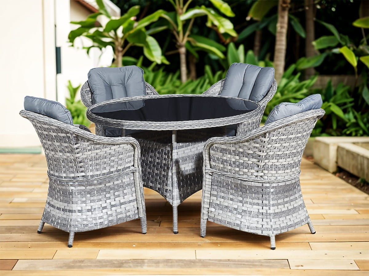 Set di mobili da tavolo in tecnorattan (4 poltrone + tavolo rotondo) MODERNO grigio chiaro