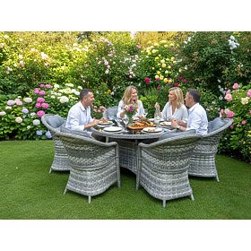 Grande set da pranzo in tecnorattan (6 poltrone + tavolo) MODERNO grigio chiaro