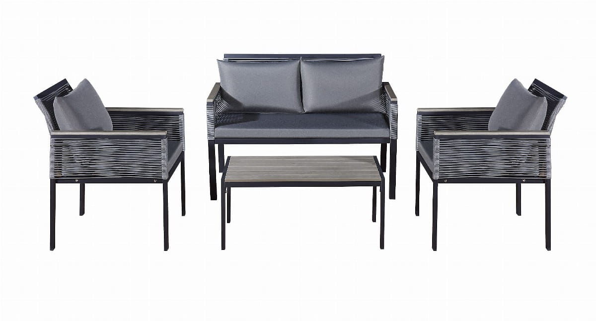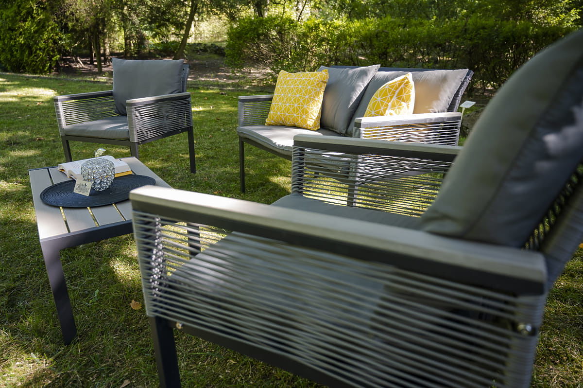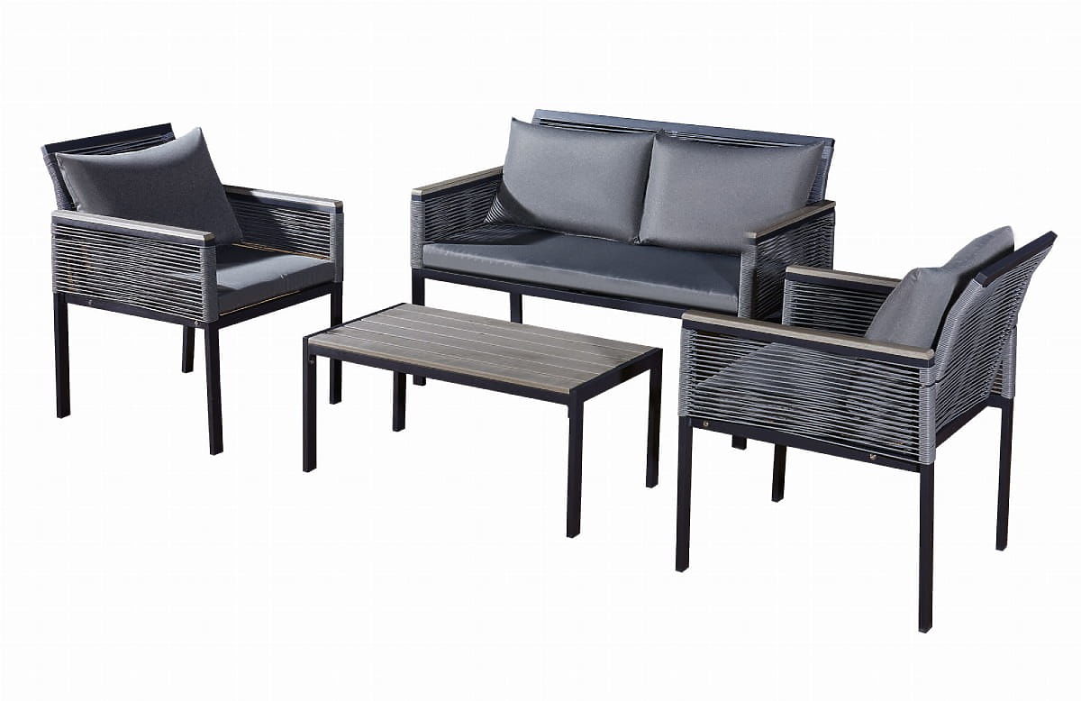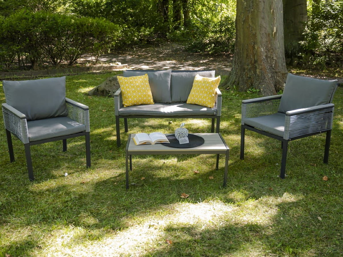 Set di mobili da giardino in alluminio (2 poltrone, divano + tavolino) CORTO rattan tecnico grigio r