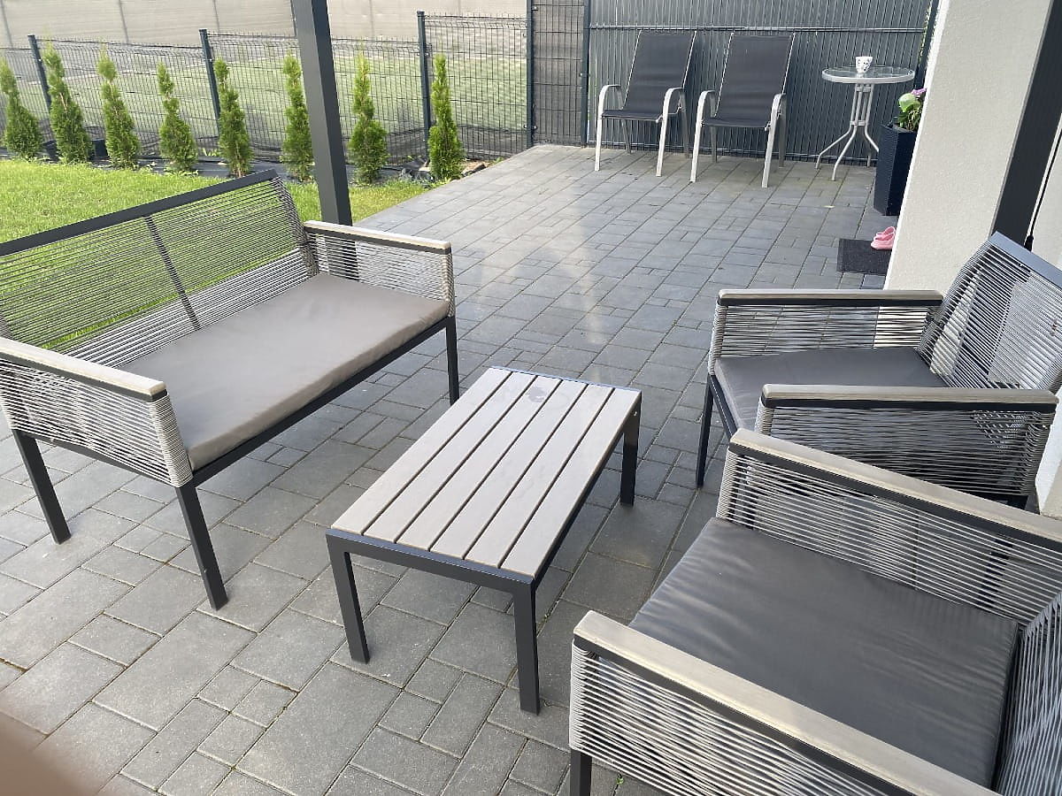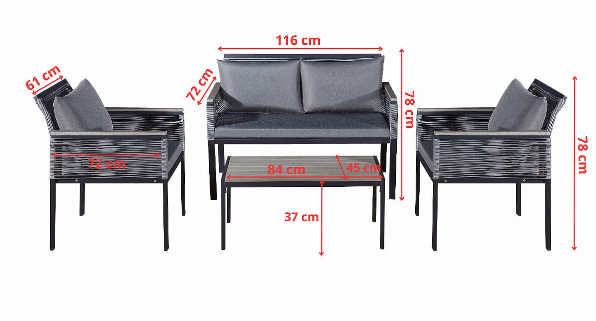 Il set di mobili CORTO è stato progettato per offrire il massimo comfort ed estetica. È un'ottima scelta per chi desidera dare un carattere unico al proprio giardino, terrazza o balcone. I mobili da giardino CORTO offrono una combinazione di comfort lussuoso e design classico; questo set non è solo comodo, ma anche estremamente funzionale, occupando poco spazio. Questo arredamento da balcone è dotato di un intreccio di rattan sintetico di alta qualità, che garantisce resistenza agli agenti atmosferici dannosi e allo stesso tempo assicura un uso prolungato senza perdere l'aspetto estetico. Il set di mobili da balcone Corto è la soluzione ideale per tutti coloro che apprezzano l'eleganza, la durata e il comfort del relax all'aria aperta, ed è anche un complemento elegante per qualsiasi ambiente esterno. Colore del set CORTO: nero, uniforme Intreccio: rattan tecnico rotondo Struttura dei mobili: alluminio (richiede un semplice montaggio) Braccioli rifiniti in polywood Il set è composto da 4 elementi (dopo il montaggio): 2 poltrone: larghezza: 61 cm profondità: 72 cm altezza: 78 cm 1 divano: larghezza: 116 cm profondità: 72 cm altezza: 78 cm 1 tavolo (piano in polywood): lunghezza: 84 cm larghezza: 45 cm altezza: 37 cm Cuscini di colore grigio inclusi nel set (3 per le sedute, 4 per gli schienali). Tutti hanno fodere rimovibili con cerniera, realizzate in materiale per esterni (100% poliestere), lavabili a basse temperature. Le fodere dei cuscini sono realizzate in tessuto di alta qualità rivestito in teflon, che le protegge dall'umidità. L'imbottitura dei cuscini è realizzata in schiuma di tappezzeria di alta qualità (durezza media - T25), che previene le deformazioni. Spessore dei cuscini: 5 cm Possibilità di cucire cuscini su misura per questo set: https://www.bg-meble.pl/pl/p/Usluga-Krawiecka-Poduszki-Na-Zamowienie-/742 Possibilità di cucire fodere su misura per questo set: https://www.bg-meble.pl/pl/p/Usluga-Krawiecka-Poszewki-Na-Zamowienie/743 Possibilità di ordinare solo il set completo. Set da montare secondo le istruzioni allegate. Il set include un set completo di viti e chiavi. Il rattan tecnico è resistente agli agenti atmosferici dannosi, ma per mantenere l'aspetto invariato dei mobili per un periodo ancora più lungo, si consiglia di acquistare una copertura protettiva. La copertura di colore grigio scuro è monopezzo e ha un cordino regolabile in fondo, infilato attraverso occhielli metallici. Tutte le coperture sono realizzate su misura e il tempo di realizzazione è di circa 14 giorni lavorativi. Immagina mobili da giardino che superano le tue aspettative in ogni aspetto – dalla resistenza al design. Ecco BELLO GIARDINO, dove ogni dettaglio conta e il lusso incontra la funzionalità: Qualità senza tempo: Il nostro rattan sintetico garantisce che i mobili durino anni senza perdere bellezza o durata. Resistenza alle intemperie: I nostri mobili affrontano le condizioni atmosferiche più difficili, dal sole cocente agli inverni gelidi, rimanendo sempre belli. Comfort lussuoso: Cuscini spessi e morbidi invitano al relax, offrendo un comfort difficile da trovare altrove. Leggerezza e resistenza: La struttura in alluminio combina il meglio di entrambi i mondi – è leggera, ma estremamente stabile. Design che affascina: Ogni elemento dei nostri mobili è stato progettato con attenzione all'estetica e alla funzionalità, per adattarsi a qualsiasi ambiente. Che tu sia un amante del minimalismo o apprezzi le finiture ricche ed eleganti, i nostri mobili soddisferanno le tue aspettative, superando i confini della funzionalità e dell'estetica comuni. Garantiamo che anche i clienti più esigenti non resisteranno al comfort e allo stile offerti da BELLO GIARDINO. Trasforma il tuo giardino, terrazza o balcone in un'oasi di relax ed eleganza che hai sempre desiderato. Non aspettare, scopri BELLO GIARDINO oggi stesso e trasforma i tuoi spazi esterni nei luoghi che hai sempre sognato.