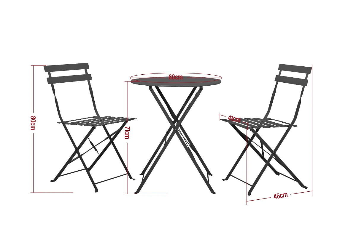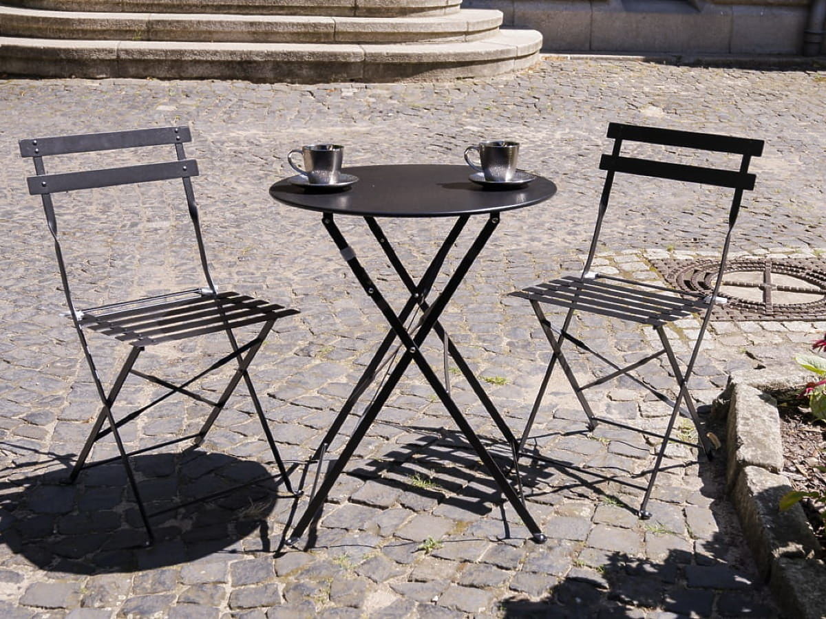Set di mobili da balcone (2 x sedie pieghevoli + tavolo) SEMPLICI Acciaio Nero