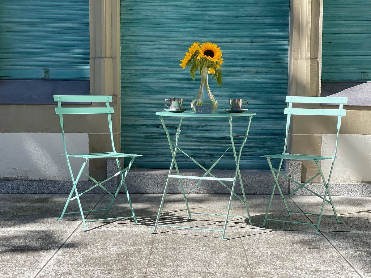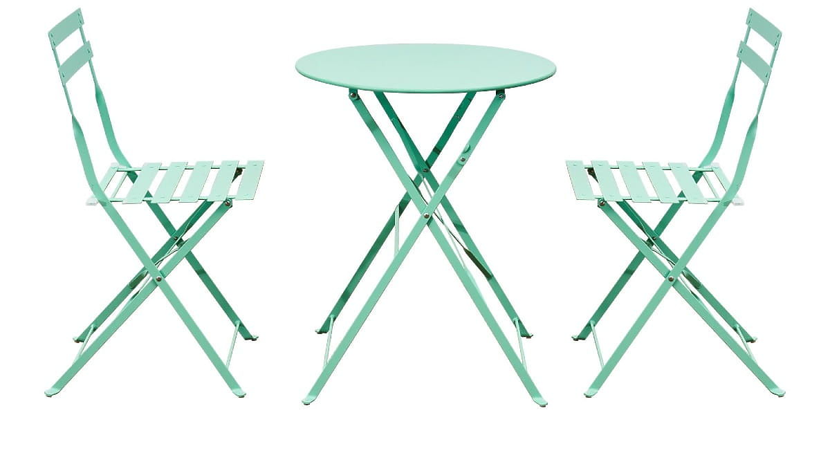 Mobili da Balcone in Acciaio (2 x sedie pieghevoli + tavolo) SEMPLICI Menta