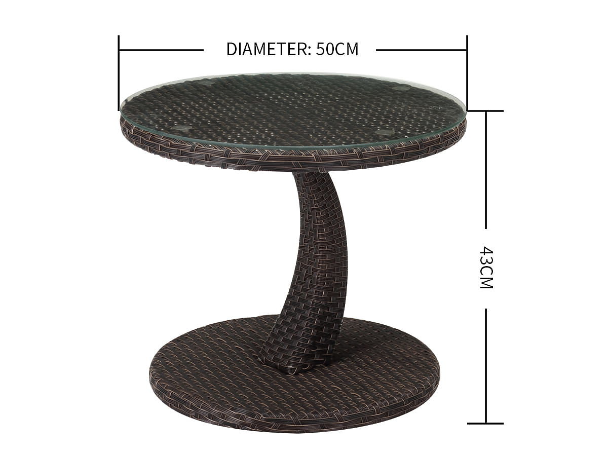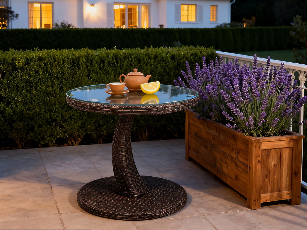 Completa la tua zona relax con un pratico e stiloso tavolino da giardino. Questo mobile compatto è il compagno ideale per il tuo lettino, poltrona o divano da giardino. Grazie al design universale, si adatta perfettamente al balcone, alla terrazza o anche a un piccolo angolo caffè in giardino. Il tavolino si distingue per la sua struttura solida. L'uso della tecnologia alu-rattan garantisce che il mobile sia non solo resistente e stabile, ma anche completamente resistente alle condizioni atmosferiche variabili e facile da pulire. Il suo piano rotondo con un diametro ottimale di 50 cm offre spazio sufficiente per una tazza di caffè, un libro o un telefono, e l'altezza di 43 cm garantisce un accesso comodo dal livello della maggior parte dei mobili da relax. Specifiche tecniche: Tipo di mobile: Tavolino Materiale: Alu-rattan (struttura in alluminio con superficie in rattan) Dimensioni: Diametro: 50 cm Altezza: 43 cm Struttura: alluminio con dimensioni 25x11x1,1 mm e 18x18x1,1 mm Superficie (Rattan): Intreccio con dimensioni 7,5x1,3 mm Tipo di montaggio: KD (struttura per montaggio/smontaggio autonomo) Scegliendo il nostro tavolino, otterrai non solo un mobile funzionale, ma anche un elegante complemento che sottolinea il carattere della tua area esterna. La sua durata e l'aspetto senza tempo lo rendono un investimento per molte stagioni. Goditi comfort e stile in ogni dettaglio del tuo giardino.