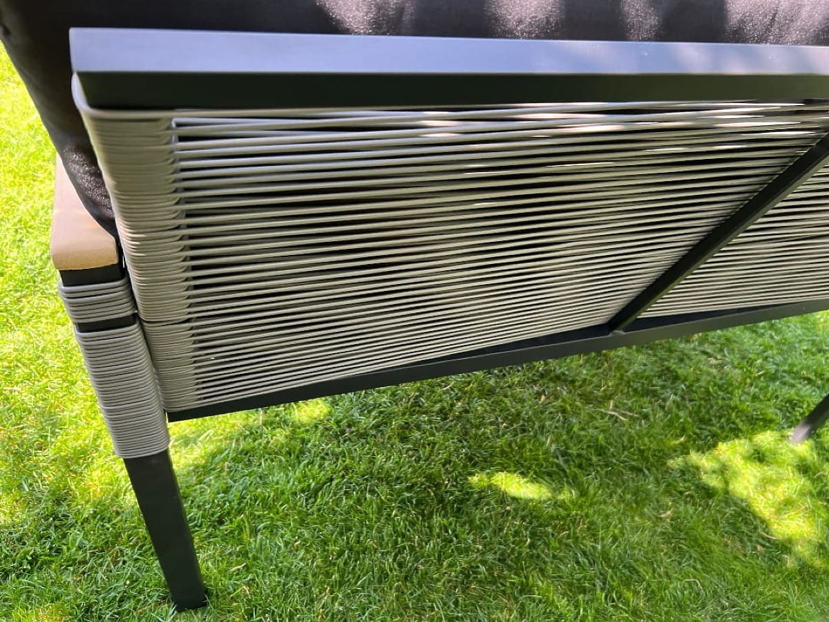 Piccolo set di mobili per balcone (2 x poltrona, divano + tavolino) CORTO alluminio nero, tecnoratta