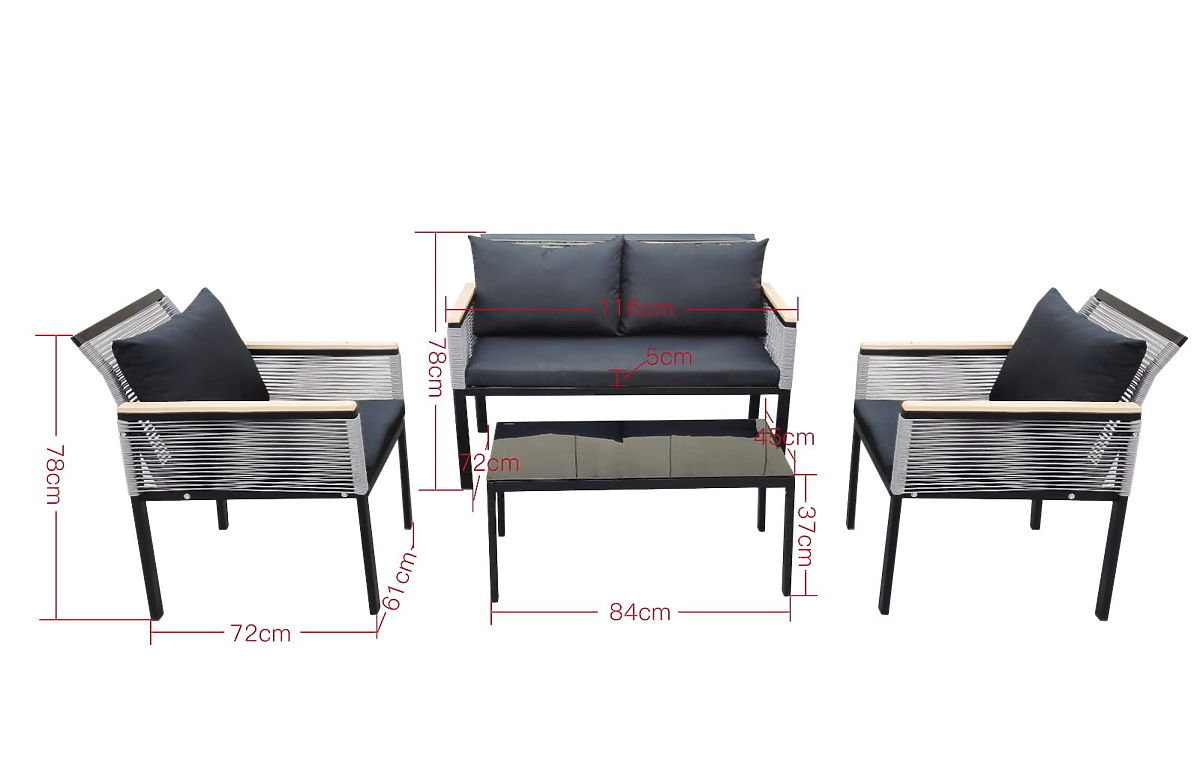 Questo set di mobili è la quintessenza del comfort e del design, un invito a creare un'oasi unica di tranquillità nel vostro giardino, sulla terrazza o sul balcone. È la scelta perfetta per chi desidera trasformare il proprio spazio esterno in un capolavoro di funzionalità ed estetica. Questo set straordinariamente originale, caratterizzato da un formato compatto, si adatta perfettamente anche agli angoli più accoglienti. Realizzato in alluminio, resistente alle intemperie, garantisce una durata fenomenale e una lucentezza impeccabile per molti anni. Se sognate la perfetta combinazione di eleganza, affidabilità e profondo relax all'aria aperta, questo set è un colpo sicuro. Diventerà un'icona di stile nella vostra disposizione esterna, illuminandola con un carattere unico e invitando a infiniti momenti di riposo. Colore del set CORTO: nero, intreccio uniforme Materiale: tecnorattan rotondo Struttura del mobile: alluminio (richiede un semplice assemblaggio) Braccioli rifiniti in polywood Il set è composto da 4 elementi (dopo l'assemblaggio): 2 x poltrona: larghezza: 61 cm profondità: 72 cm altezza: 78 cm 1 x divano: larghezza: 116 cm profondità: 72 cm altezza: 78 cm 1 x tavolo (piano in polywood): lunghezza: 84 cm larghezza: 45 cm altezza: 37 cm Cuscini neri inclusi nel set (3 pezzi per sedili, 4 pezzi per schienali). Tutti hanno fodere rimovibili con cerniera, realizzate in materiale per esterni (100% poliestere), lavabili a basse temperature. Le fodere dei cuscini sono cucite con tessuto di alta qualità rivestito in teflon, che le protegge dall'umidità. L'imbottitura dei cuscini è realizzata in schiuma di tappezzeria di alta qualità (media durezza - T25), che previene le deformazioni. Spessore dei cuscini: 5 cm Possibilità di cucire cuscini su misura per questo set: https://www.bg-meble.pl/pl/p/Usluga-Krawiecka-Poduszki-Na-Zamowienie-/742 Possibilità di cucire fodere per cuscini su misura per questo set: https://www.bg-meble.pl/pl/p/Usluga-Krawiecka-Poszewki-Na-Zamowienie/743 Possibilità di ordinare solo il set completo. Set da assemblare autonomamente secondo le istruzioni allegate. Il set include un kit completo di viti e chiavi. Il tecnorattan è resistente agli agenti atmosferici dannosi, ma per preservare ancora più a lungo l'aspetto immutato dei mobili, consigliamo di acquistare una copertura protettiva. La copertura di colore grigio scuro è monopezzo e ha un cordoncino regolabile in basso, passato attraverso occhielli metallici. Tutte le coperture sono realizzate su ordinazione e il tempo di realizzazione è di circa 14 giorni lavorativi. Immaginate mobili da giardino che superano le vostre aspettative in ogni aspetto – dalla resistenza al design. Ecco BELLO GIARDINO, dove ogni dettaglio ha importanza e il lusso incontra la funzionalità: Qualità senza tempo: Il nostro rattan sintetico garantisce che i mobili durino anni, senza perdere bellezza o durata. Resistenza alle intemperie: I nostri mobili affrontano le condizioni atmosferiche più difficili, dal sole cocente agli inverni gelidi, rimanendo sempre belli. Comfort lussuoso: Cuscini spessi e morbidi invitano al relax, offrendo un comfort difficile da trovare altrove. Leggerezza e robustezza: La struttura in alluminio combina il meglio di entrambi i mondi – è leggera, ma straordinariamente stabile. Design che incanta: Ogni elemento dei nostri mobili è stato progettato con un occhio all'estetica e alla funzionalità, per adattarsi a qualsiasi ambiente. Che siate amanti del minimalismo o apprezziate arrangiamenti ricchi ed eleganti, i nostri mobili soddisferanno le vostre aspettative, superando i confini della semplice funzionalità ed estetica. Garantiamo che anche i clienti più esigenti non resisteranno al comfort e allo stile offerti da BELLO GIARDINO. Trasformate il vostro giardino, terrazza o balcone in un'oasi di relax ed eleganza che avete sempre desiderato. Non aspettate, scoprite BELLO GIARDINO oggi stesso e trasformate i vostri spazi esterni nei luoghi che avete sempre sognato.
