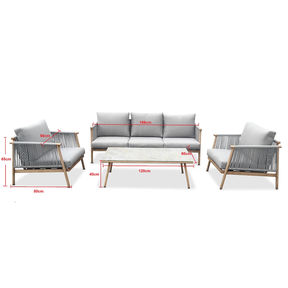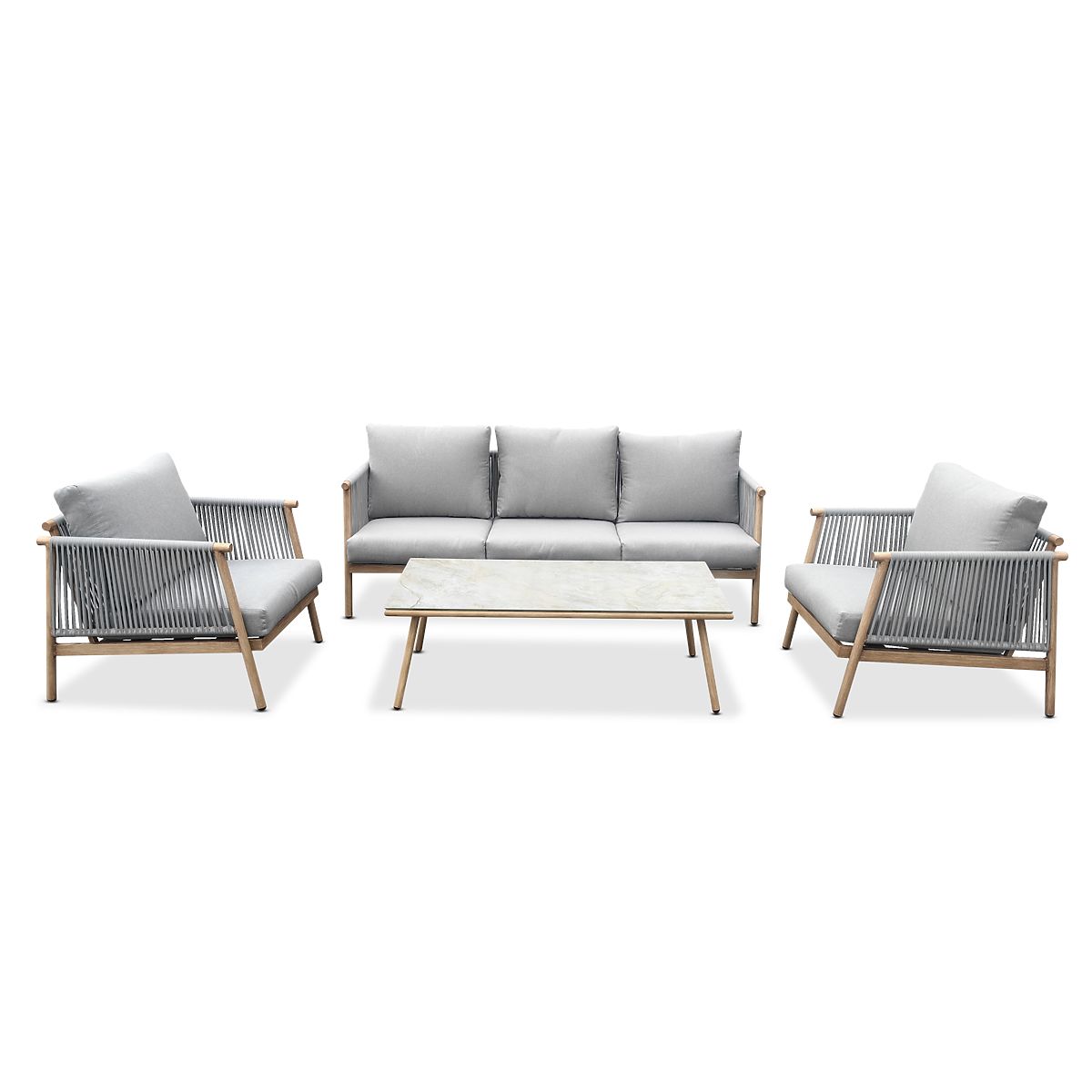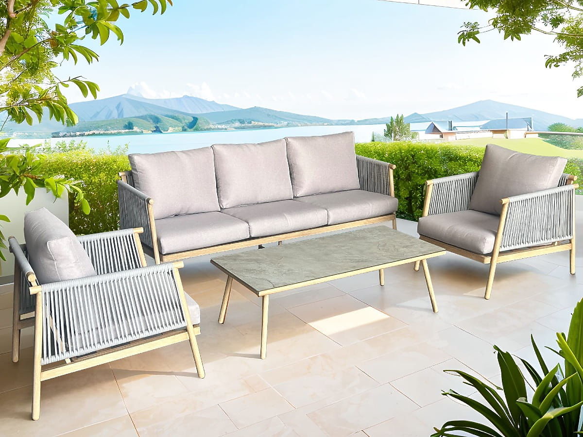 Set di mobili da terrazza in alluminio (Grande divano, 2 poltrone e tavolino) BLANDO grigio chiaro,
