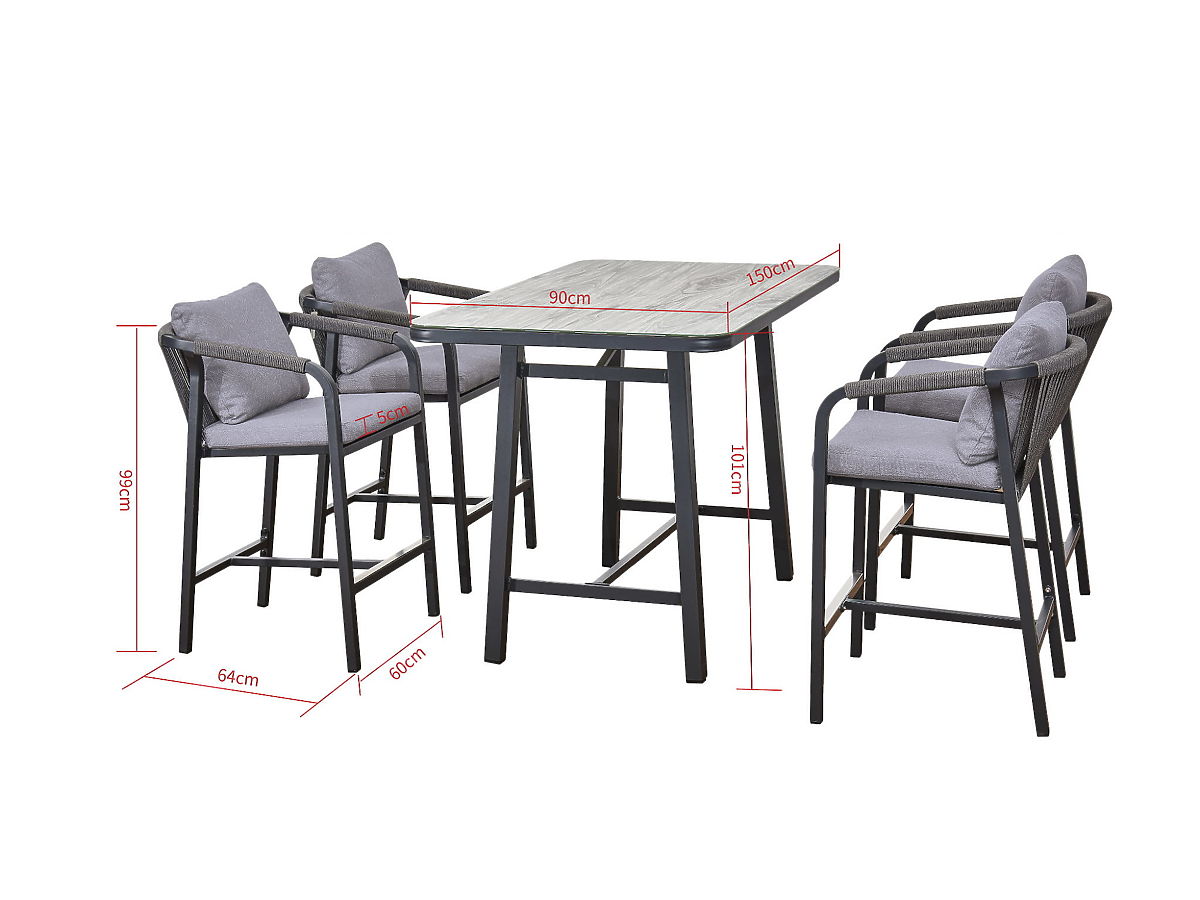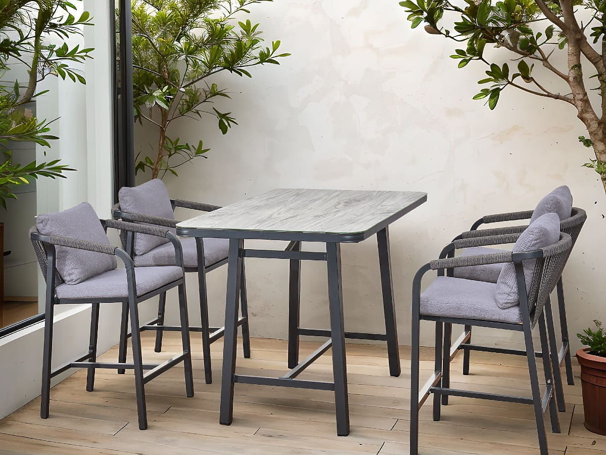 Set di mobili da giardino (4 sgabelli da bar + tavolo alto) BREZZA grigio