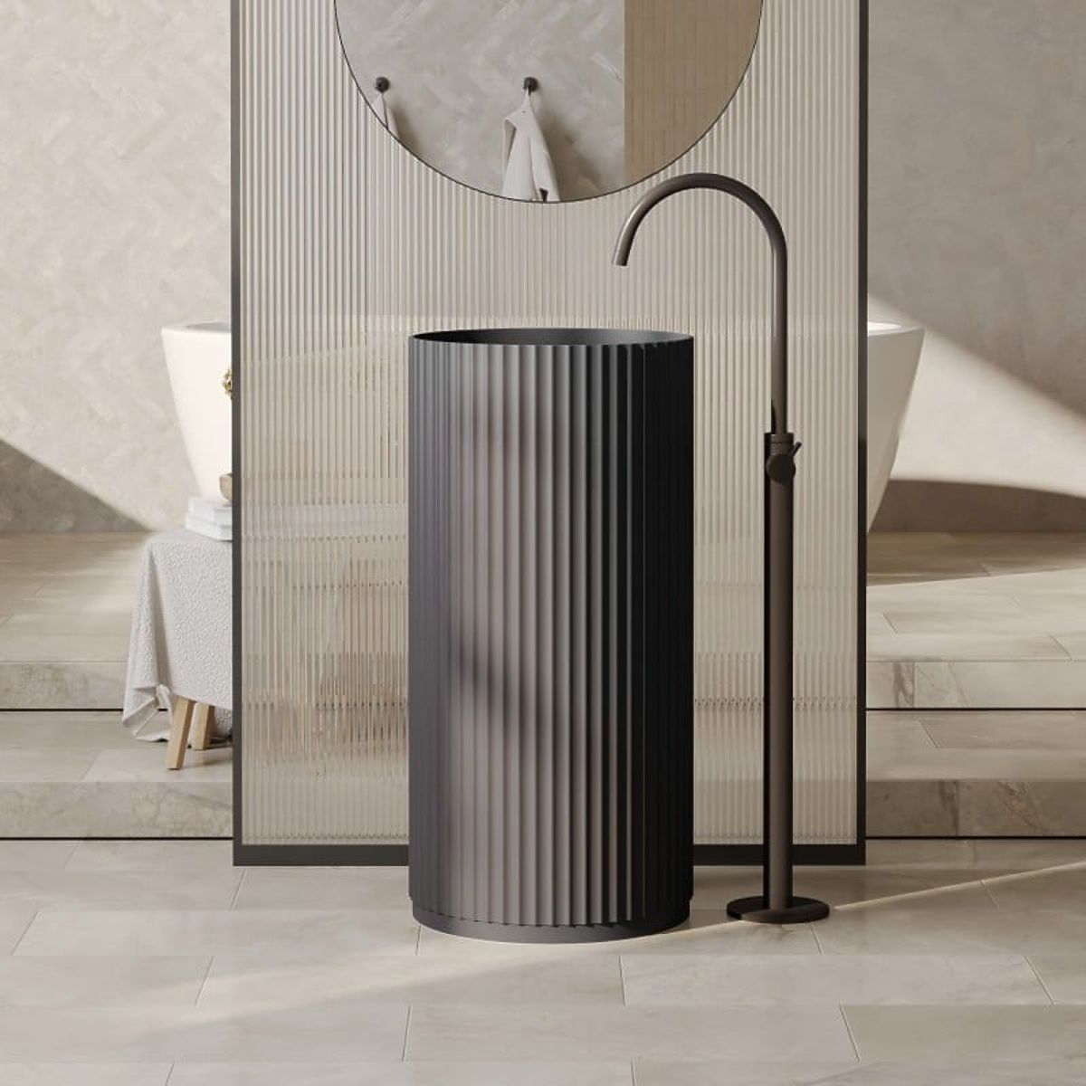 Lavabo Ciriola grigio scuro con superficie scanalata e design moderno. .. altro