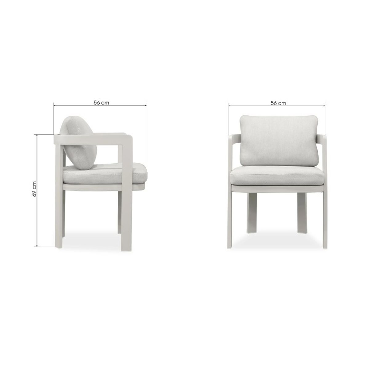 La sedia Japori unisce tranquillità ed eleganza in ogni dettaglio. La struttura leggera in beige chiaro e le forme arrotondate le conferiscono un carattere accogliente, mentre i morbidi cuscini invitano a un comodo relax con stile.
