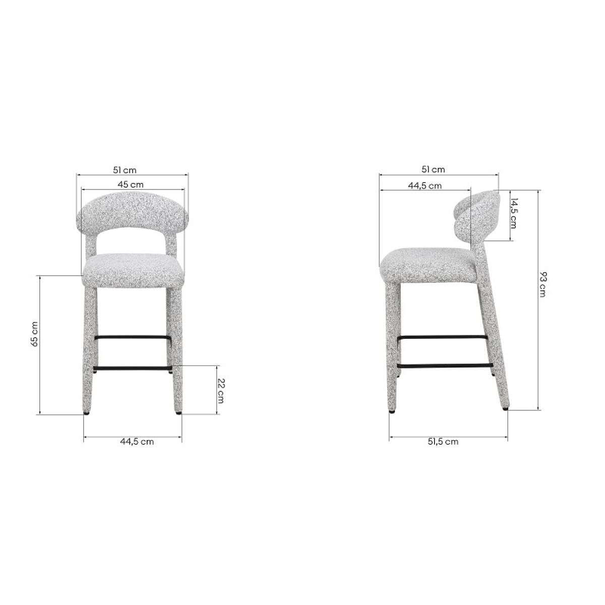 Lo sgabello da bar Hiroki è una scelta stilosa e funzionale, perfetta per essere posizionata vicino all'isola della cucina, creando un comodo spazio per consumare i pasti. Il suo rivestimento mélange con motivo multicolore dona all'interno un carattere accogliente ed elegante.