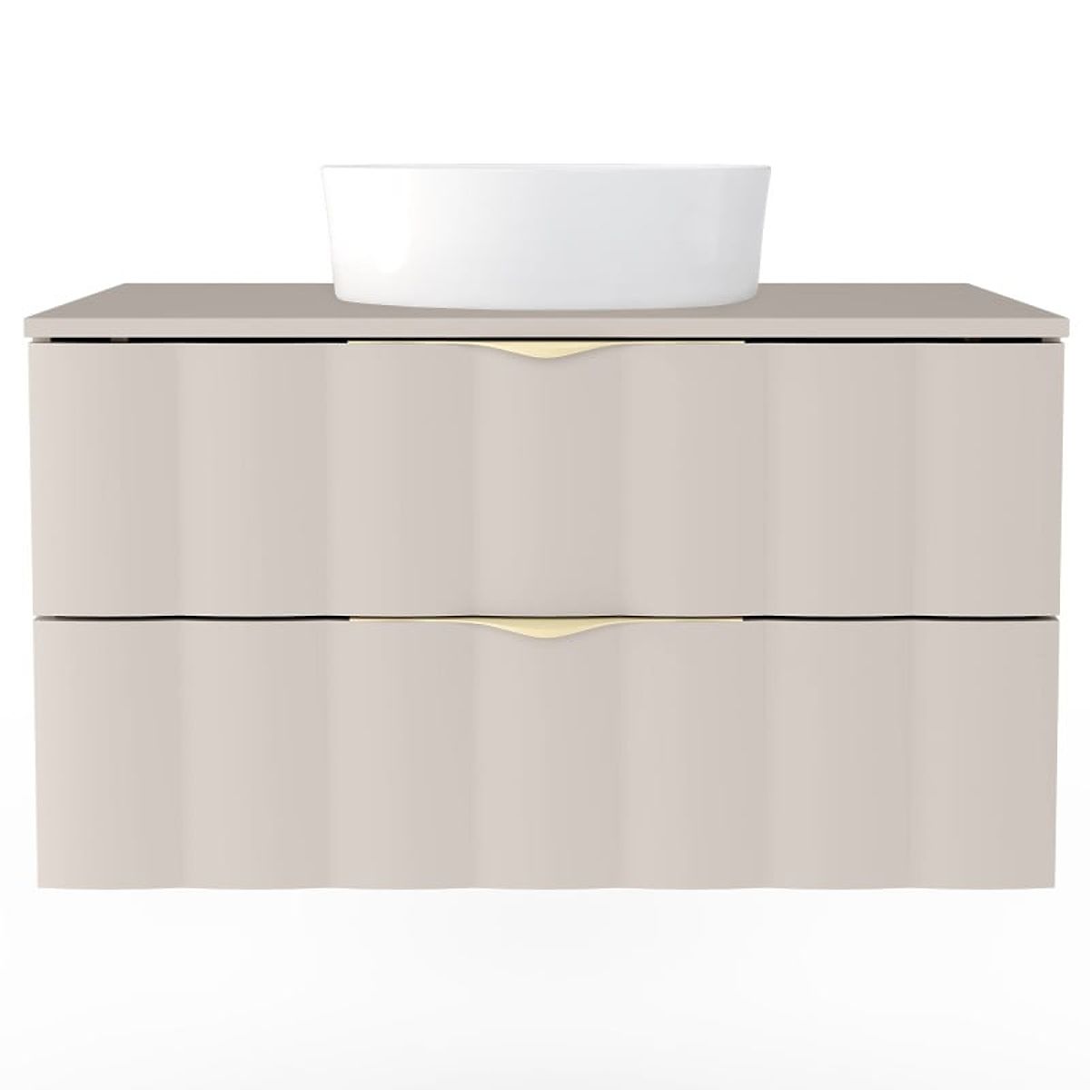 Lukahome.it » Bagno e toilette / Mobili da bagno / Mobiletto sotto lavabo Omi 80 cm, pannello frontale ondulato, maniglie dorate, beige cashmere