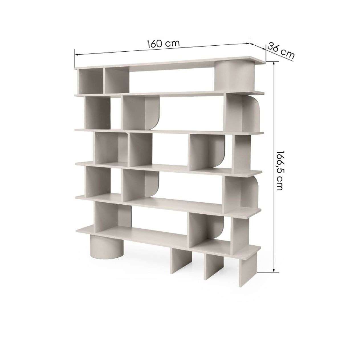 Lo scaffale Rangali è la combinazione ideale di funzionalità e design eccezionale. La tonalità cashmere e sei ripiani solidi con archi decorativi ti permettono di organizzare esteticamente il tuo spazio e di conferirgli un carattere moderno.