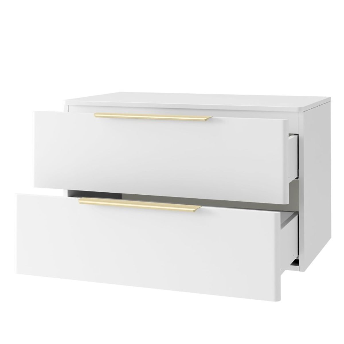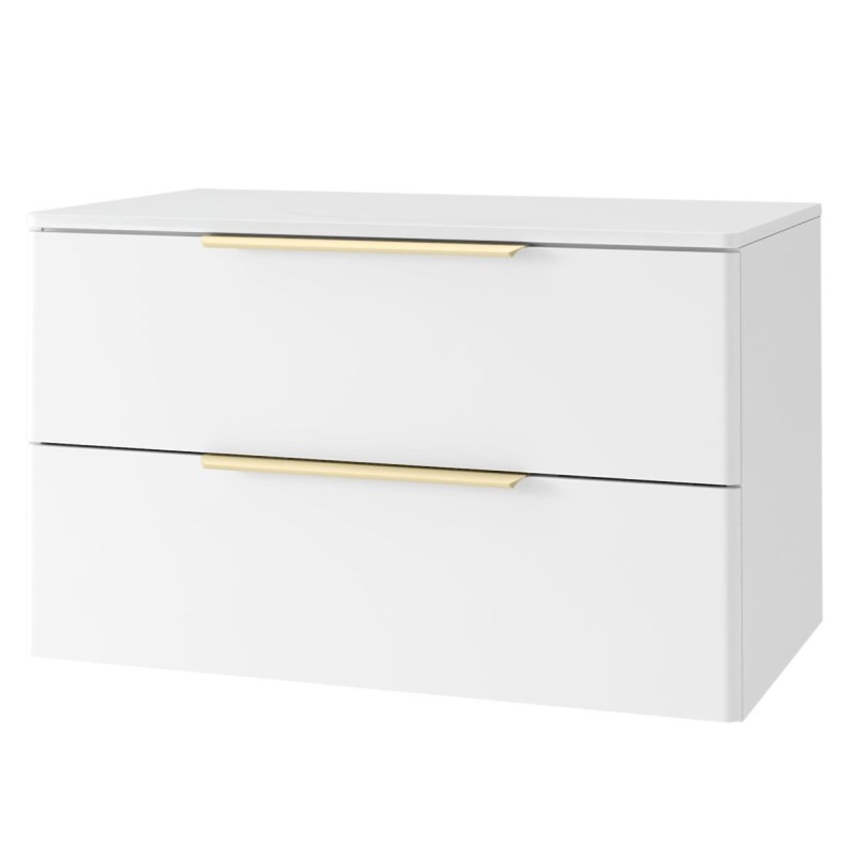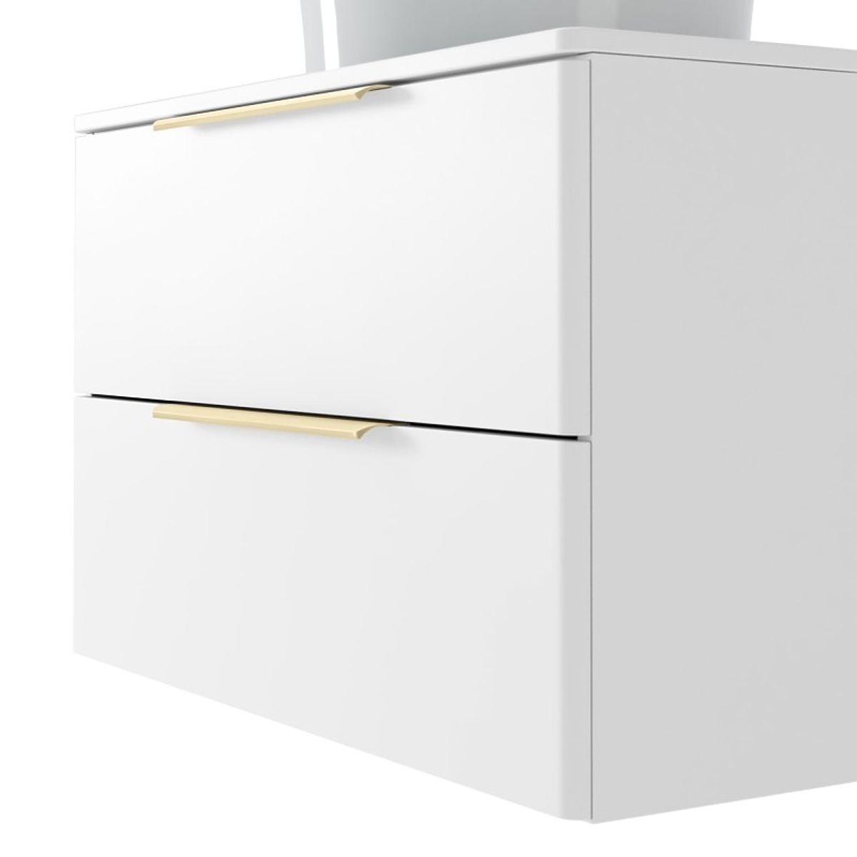 Il mobiletto Tidea è una delicata combinazione di semplicità moderna e dettagli eleganti. Le superfici frontali bianche con un delicato accento dorato delle maniglie creano un mobile che completa magnificamente lo spazio di ogni bagno, mentre i cassetti funzionali con chiusura silenziosa garantiscono comfort e ordine nell'uso quotidiano.