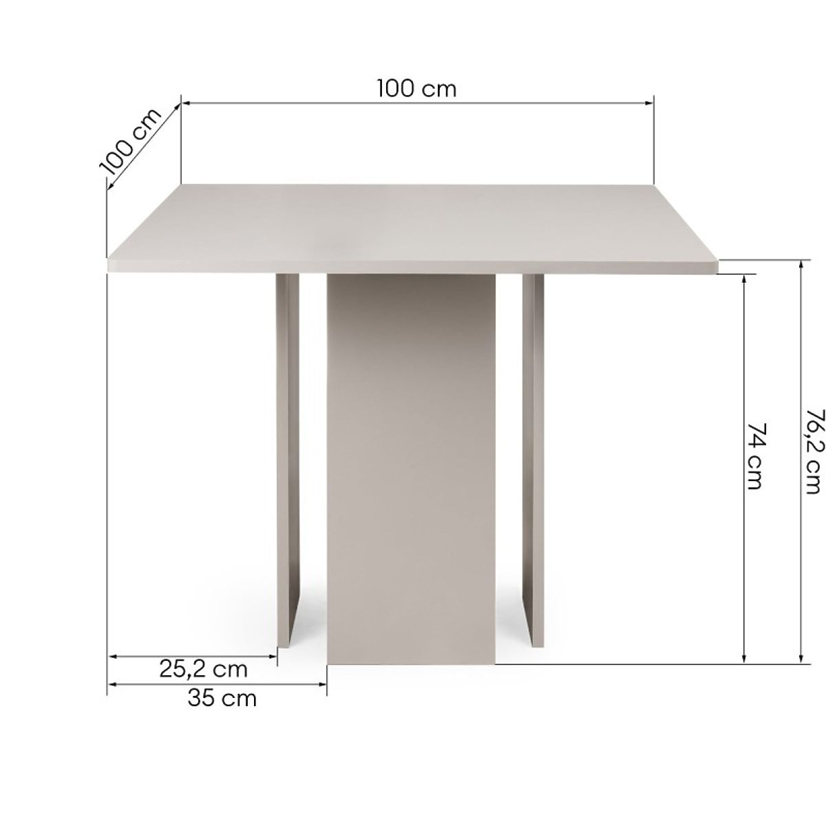 Il tavolo da pranzo Gasper, con dimensioni di 100 × 100 cm e color cashmere, è un mobile moderno che si adatta perfettamente alla cucina, sala da pranzo o soggiorno. Il piano quadrato offre un comodo spazio per quattro persone, rendendo il tavolo ideale per appartamenti e spazi più piccoli.