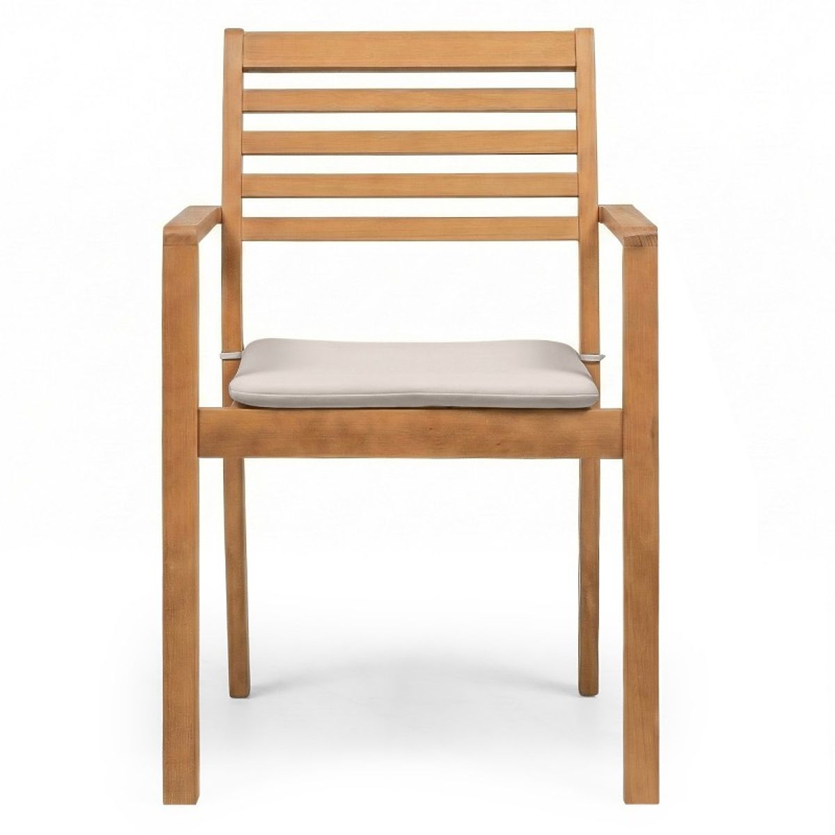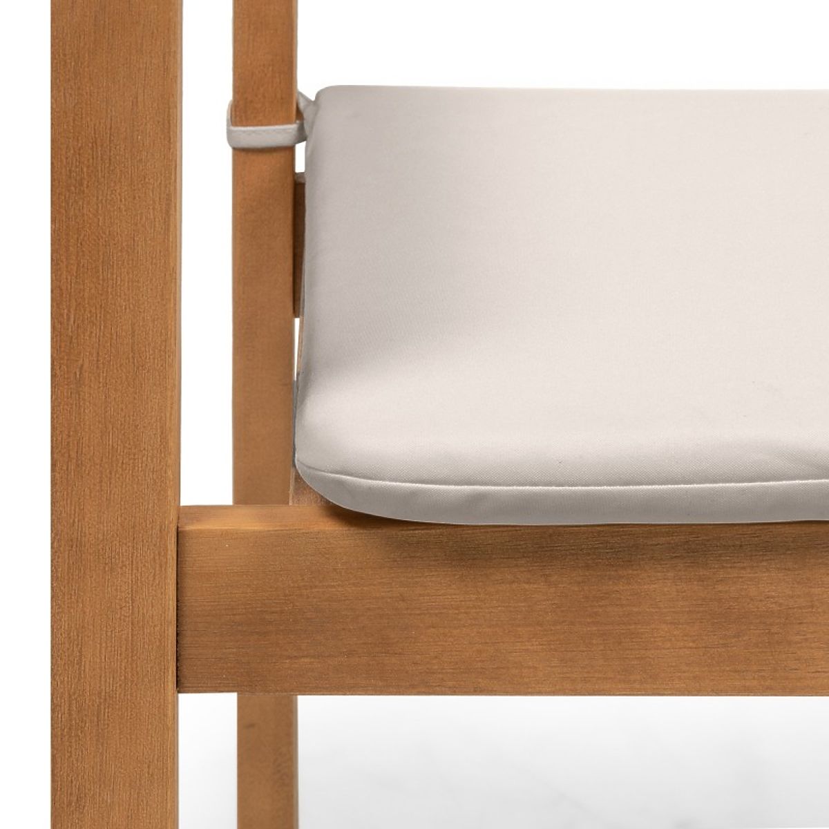 Sedia da giardino in legno di eucalipto con finitura teak e cuscino grigio chiaro. .. altro