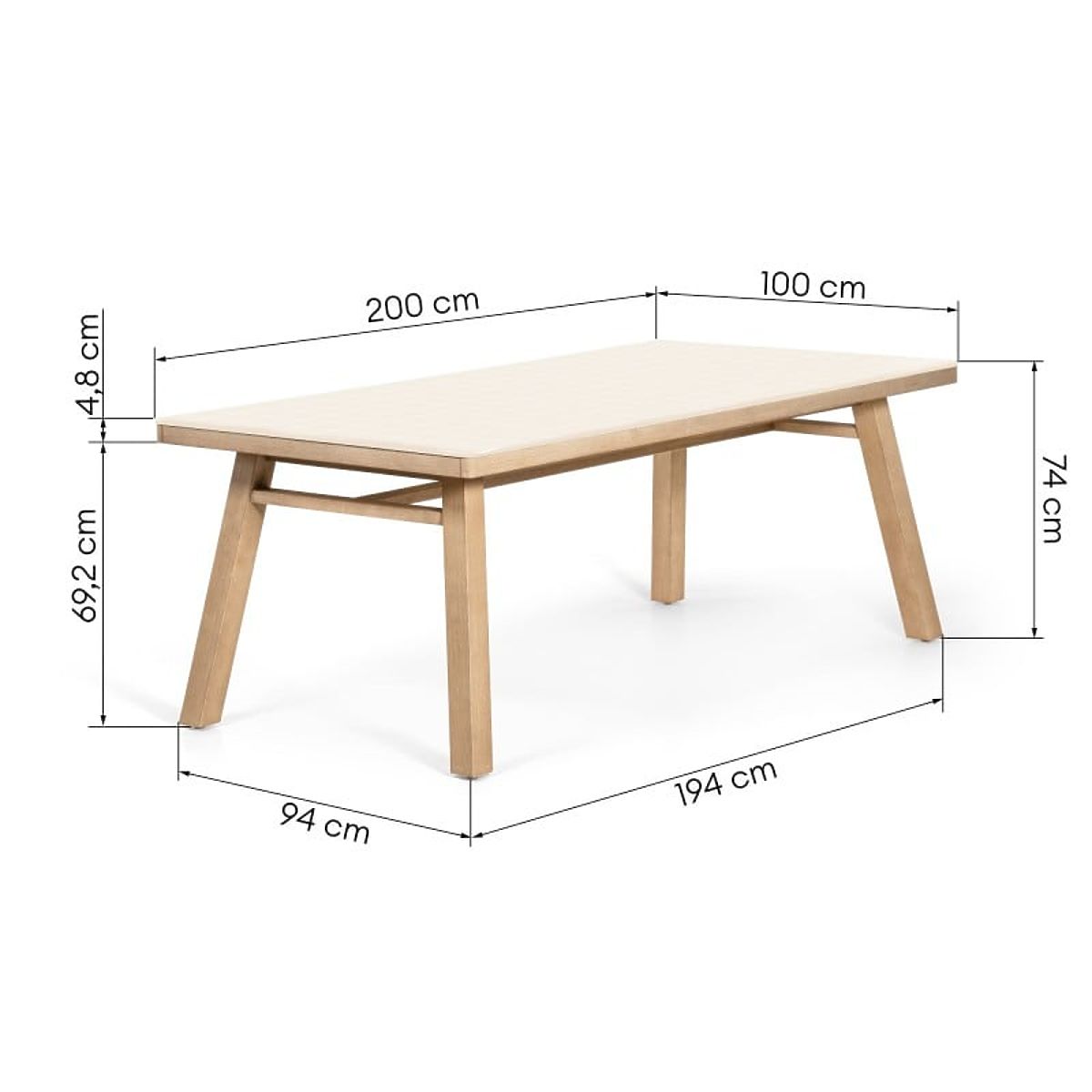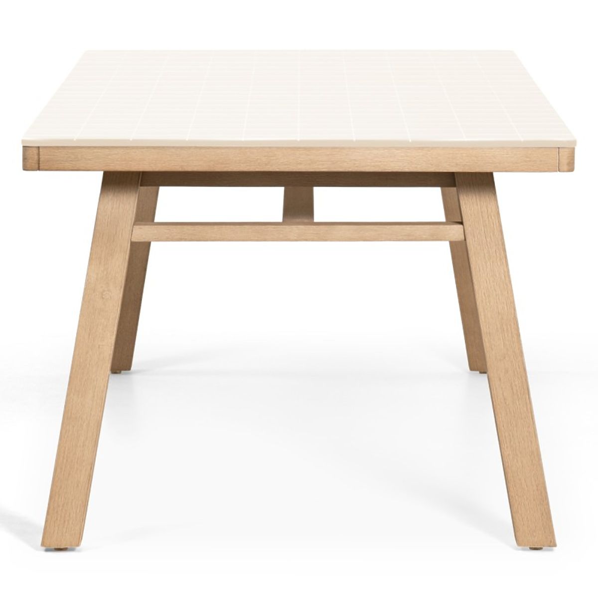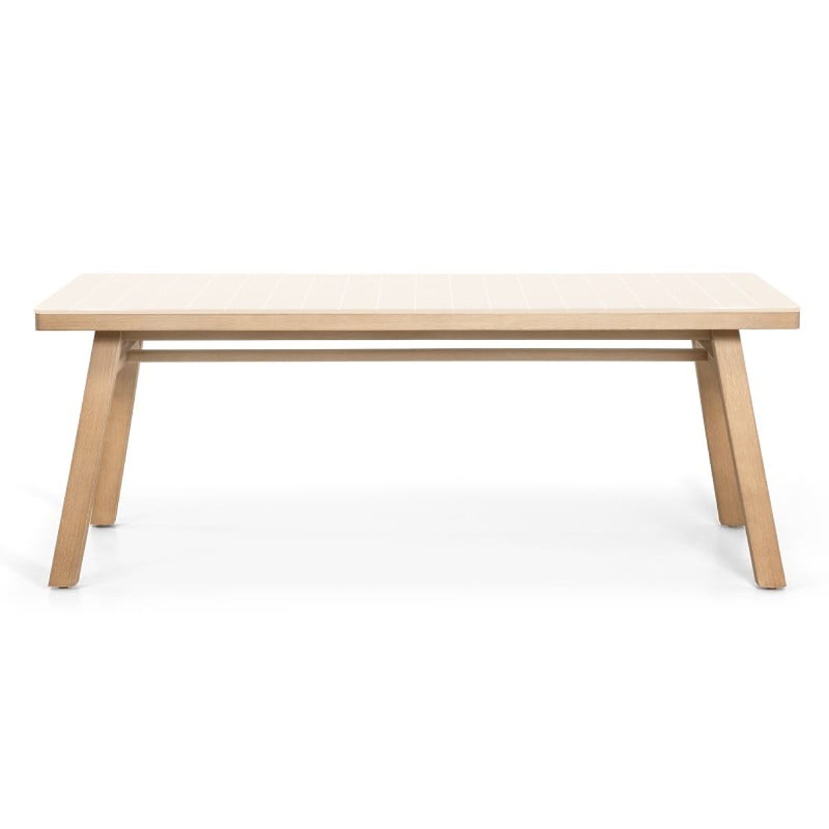 Tavolo da giardino con piano beige chiaro e gambe in legno di acacia. .. altro