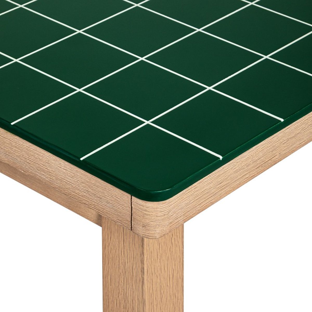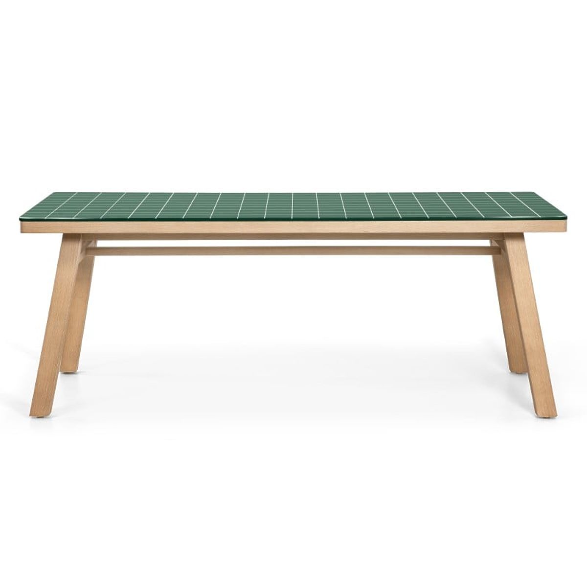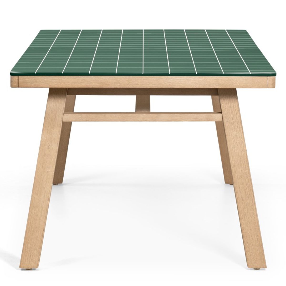 Wabi è un tavolo che combina un motivo grezzo e geometrico con il calore del legno naturale. Il piano verde profondo e la griglia bianca precisa creano un aspetto unico e architettonico che ravviva qualsiasi spazio giardino.