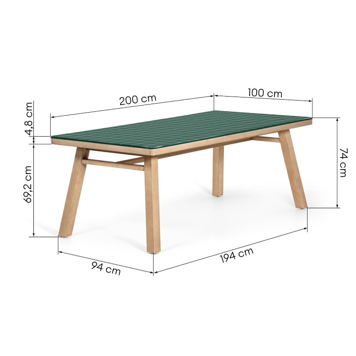 Tavolo da giardino con piano verde e gambe in legno di acacia chiaro. .. altro