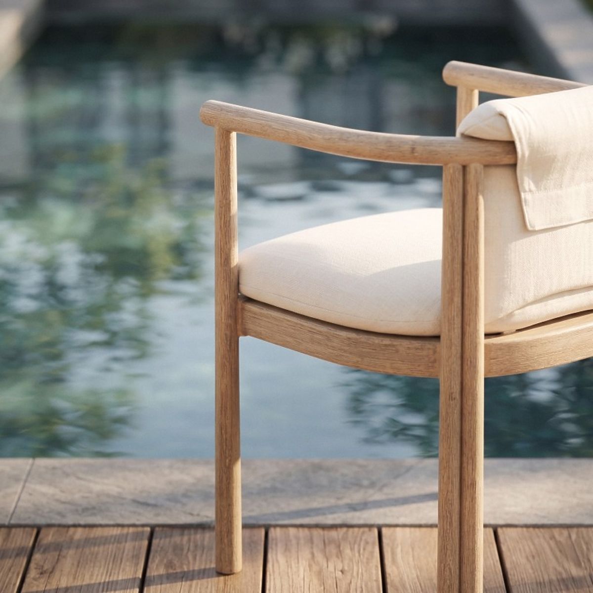 Sedia da giardino in legno di acacia chiaro con cuscini beige chiaro. .. altro