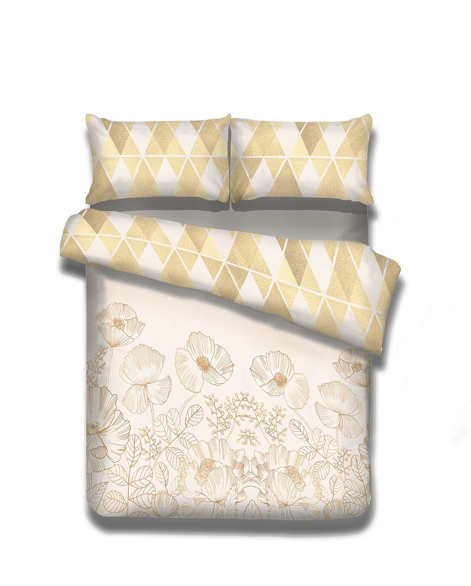 Biancheria da letto gialla con motivo floreale e chiusura a cerniera. .. altro