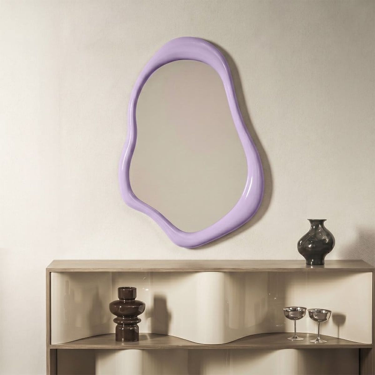 Specchio Maluma con cornice lilla lucida e forma irregolare. .. altro