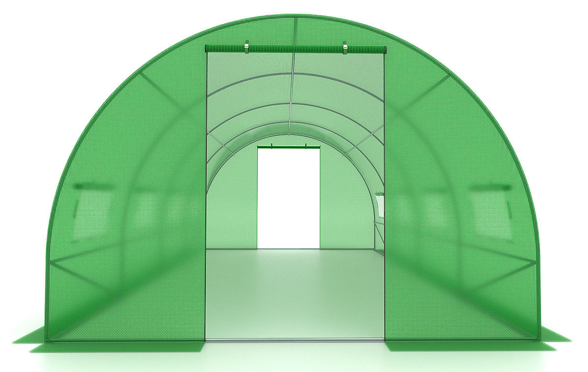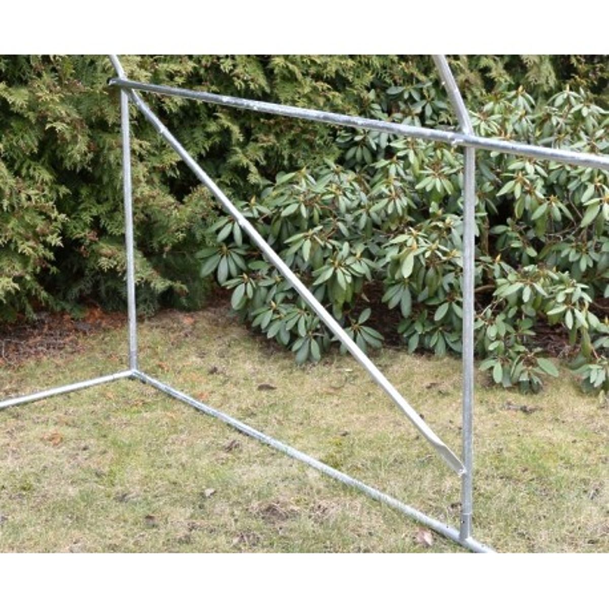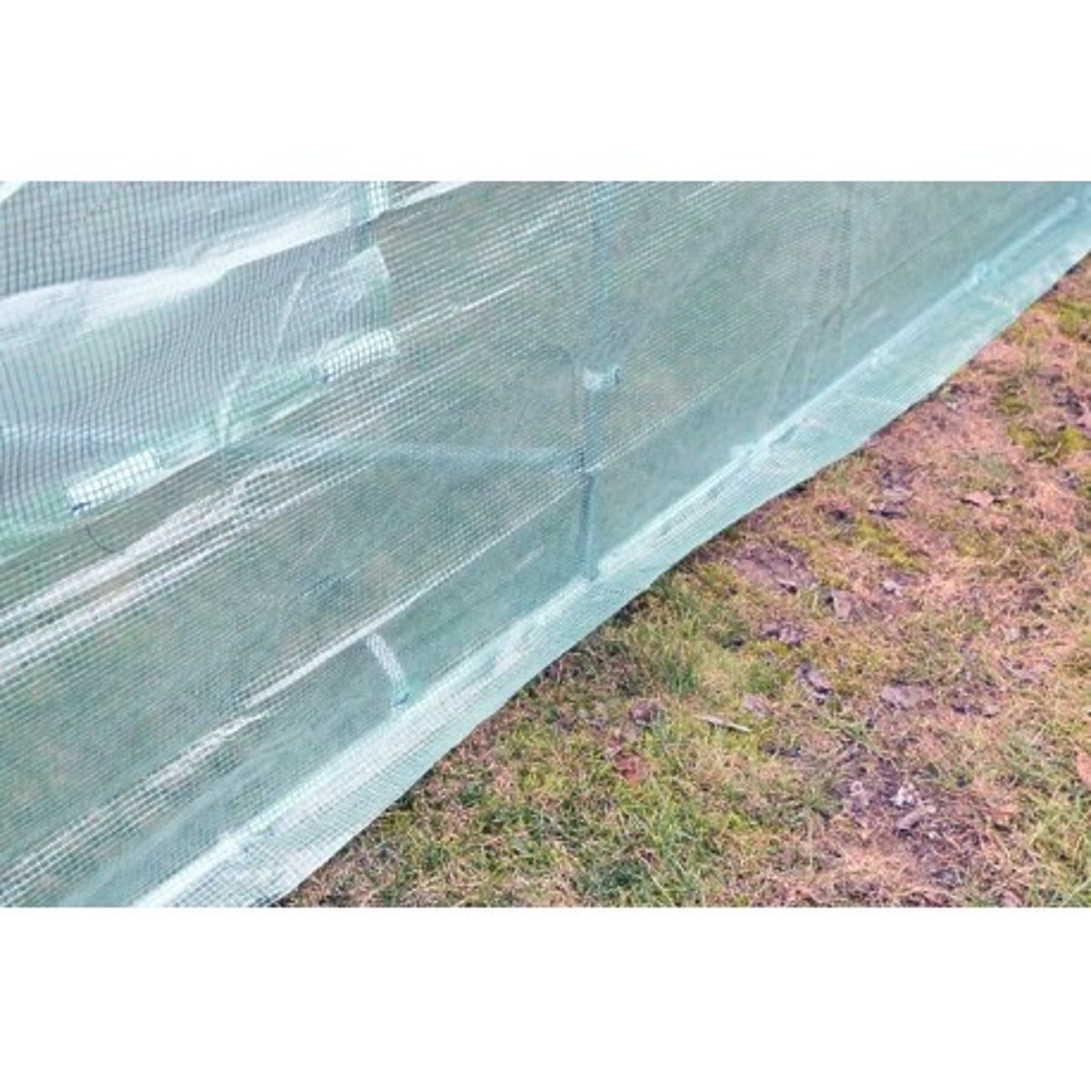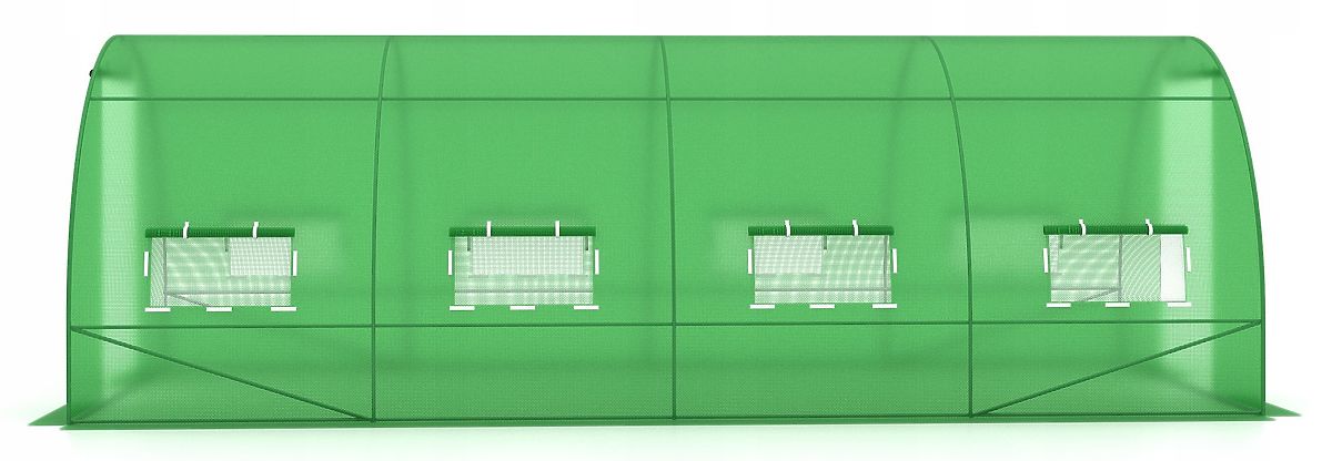 Grazie alla rete incorporata nella pellicola, il rivestimento è resistente agli strappi. Un danno alla pellicola non causerà ulteriori strappi. Il tunnel è dotato di finestre chiudibili con zanzariera sui lati. Le finestre permettono il flusso d'aria e il raggiungimento della giusta umidità all'interno. Grazie ai profili robusti e spessi, la struttura è stabile e resistente. L'intero telaio è stato sottoposto a un processo di zincatura, garantendo un uso antiruggine. Profili aggiuntivi rendono il tunnel più forte e stabile. Il bordo del terreno sui lati della pellicola può essere coperto di terra o appesantito con pietre. In questo modo, il tunnel ottiene ulteriore stabilità ed è protetto dal sollevamento della pellicola. Il modello ha ancore aggiuntive che permettono una migliore tensione del rivestimento del tunnel. Le porte avvolgibili si aprono con cerniere robuste.