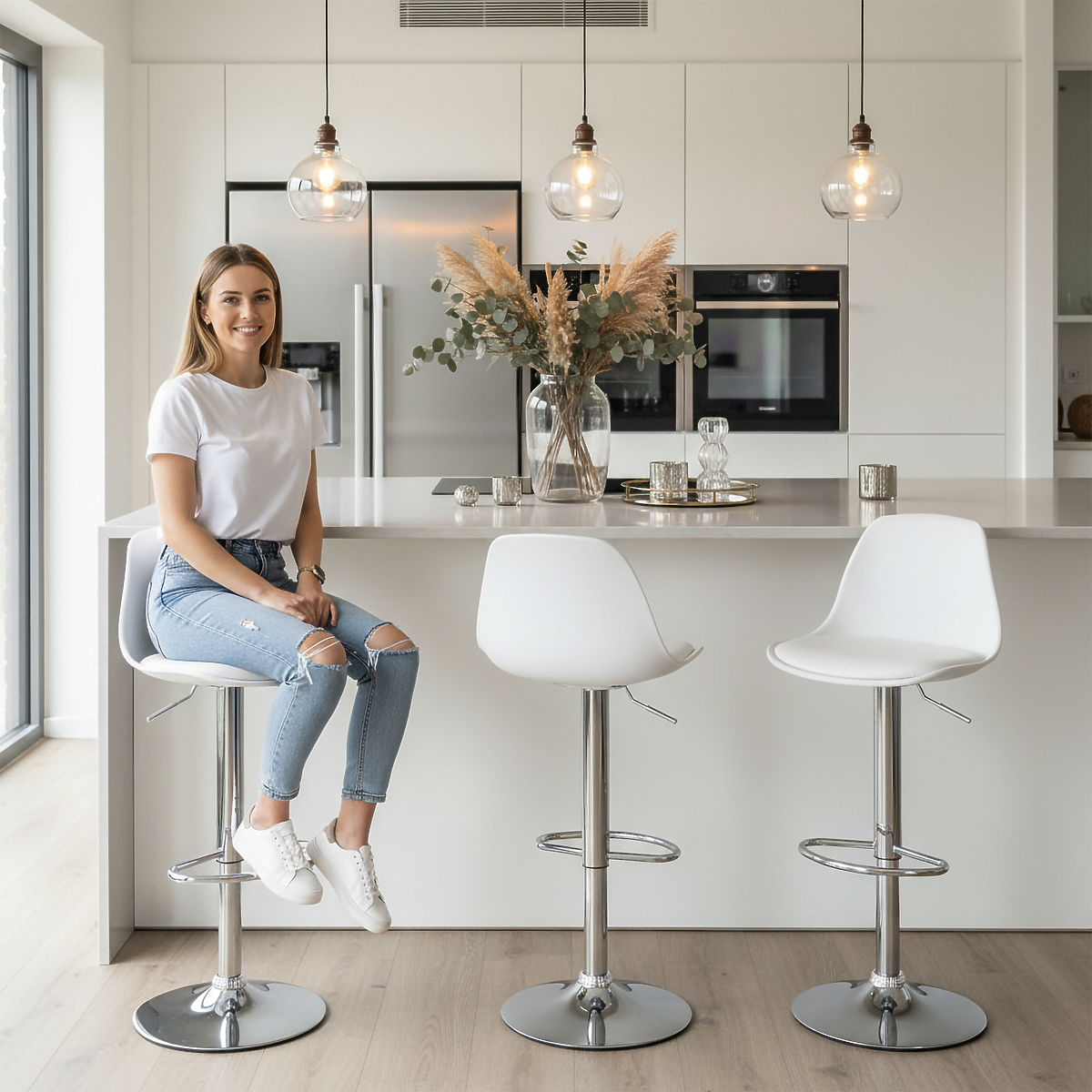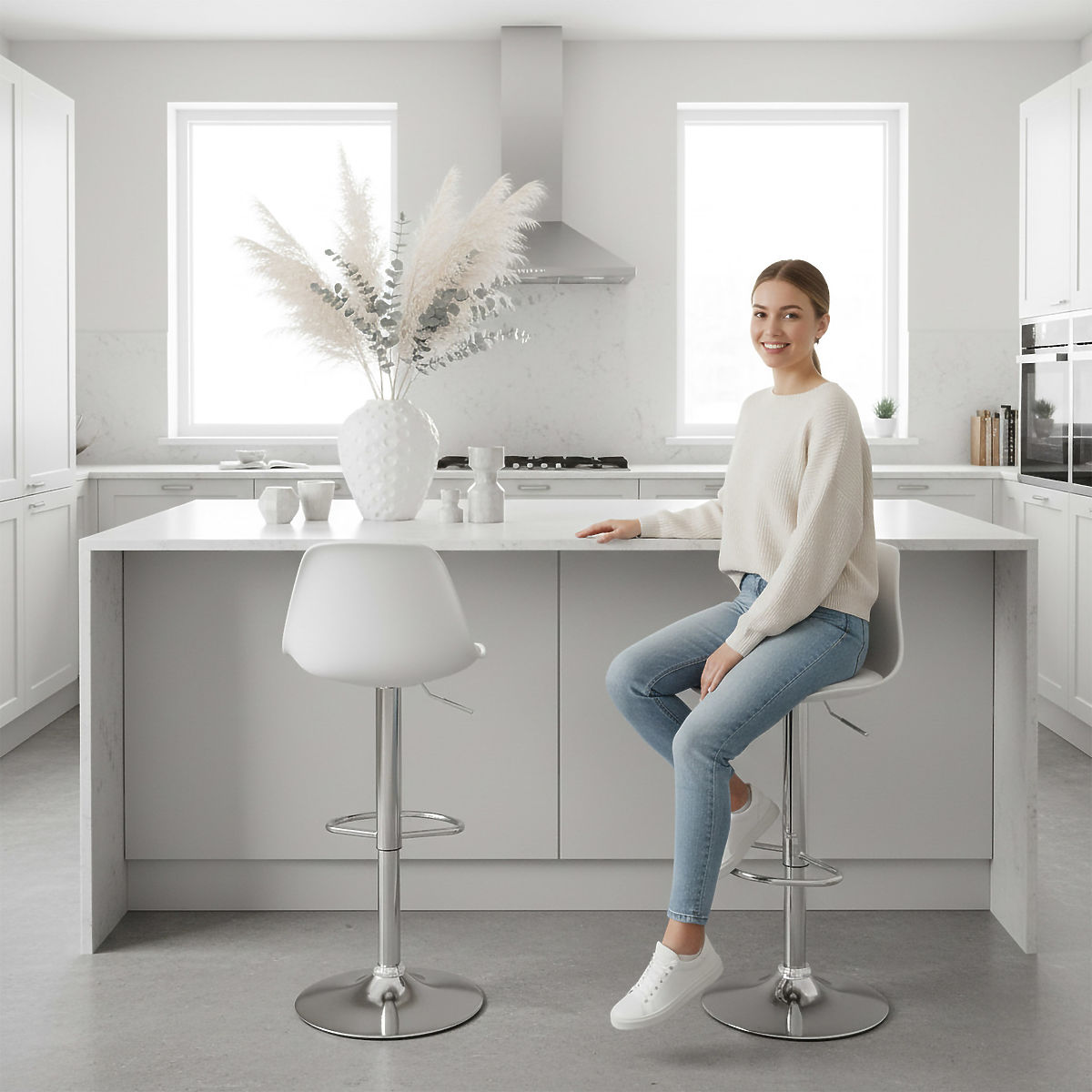 Lo sgabello da bar Ricardo è la combinazione ideale di stile e praticità. Il suo design moderno porta eleganza in ogni ambiente e funzioni come la seduta girevole e l'altezza regolabile garantiscono comfort durante l'uso. Si adatta perfettamente alla cucina, dove è adatto per l'uso a banconi, bar o isole cucina. La struttura stabile e cromata e la facile manutenzione assicurano che soddisfi le aspettative anche delle persone più esigenti.