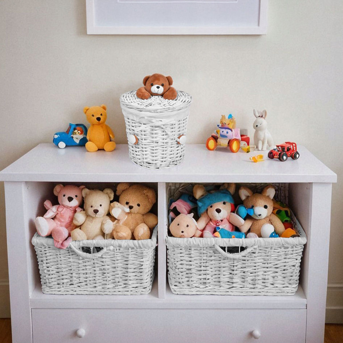 Il cesto in vimini è perfetto come contenitore per giocattoli o piccoli oggetti nel regno del tuo bambino. È un complemento molto bello ed estetico per ogni stanza.